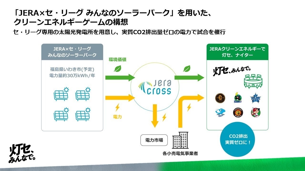 株式会社JERA(本社:東京都中央区、代表取締役会長 Global CEO:可児 行夫および代表取締役社長 CEO兼COO:奥田 久栄、以下「JERA」)とセントラル・リーグ6球団「読売ジャイアンツ」「東京ヤクルトスワローズ」「横浜DeNAベイスターズ」「中日ドラゴンズ」「阪神タイガース」「広島東洋カープ」(以下、「セ・リーグ6球団」)はこのたび、持続可能でより良い社会の実現に向けて、選手もファンも監督もみんなですすめる、JERA × セ・リーグ「灯セ、みんなで。」プロジェクトを始動することといたしました。