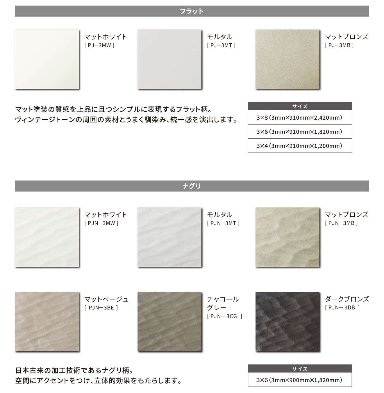 ■ カラーバリエーション|選べる2つの仕上げ × 多彩なカラー展開