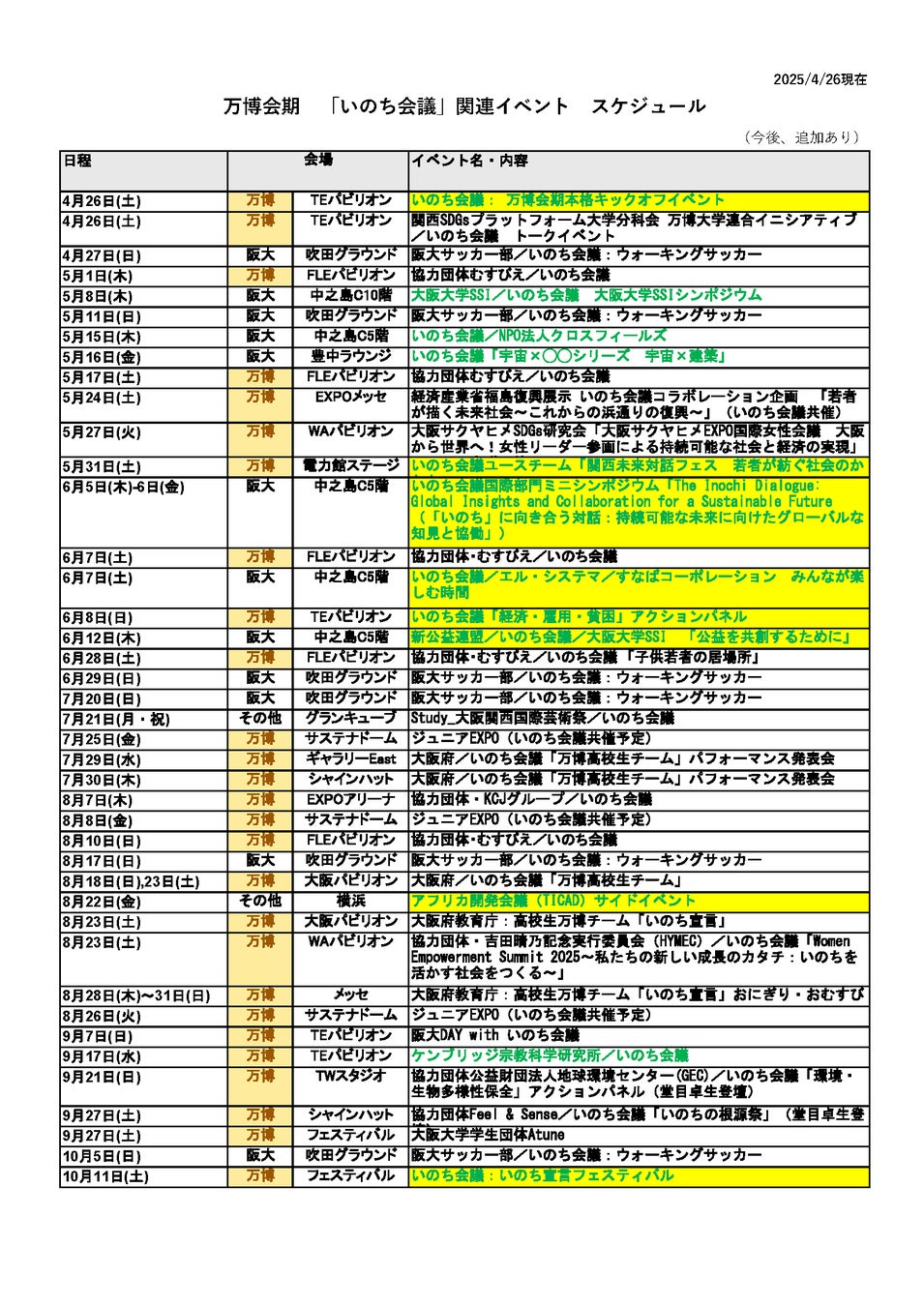 ・万博会期のいのち会議関連の予定について