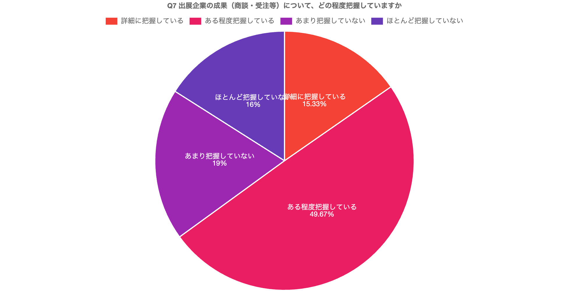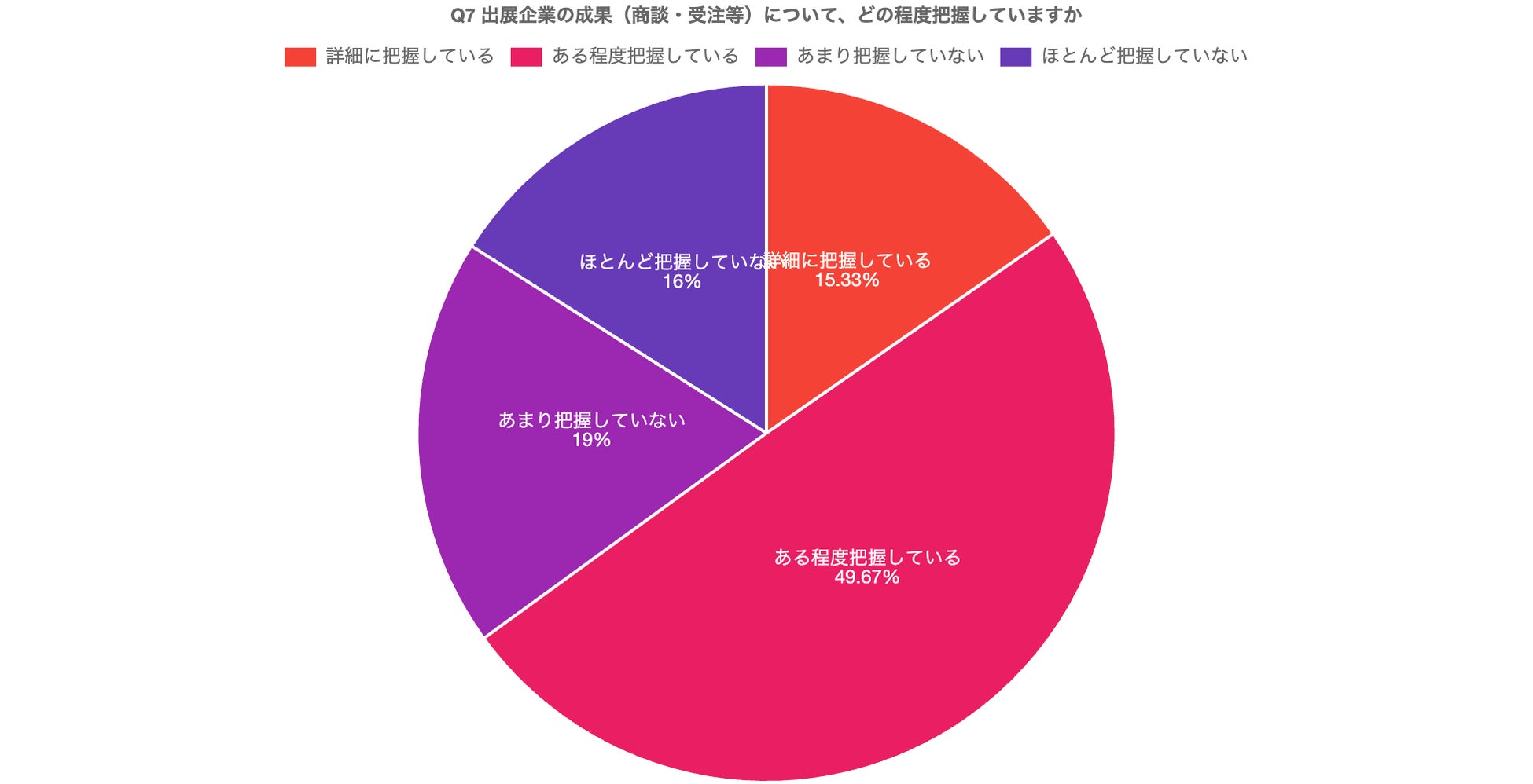 出展企業の成果(商談・受注等)の把握については「把握している」とする回答が6割以上を占め、