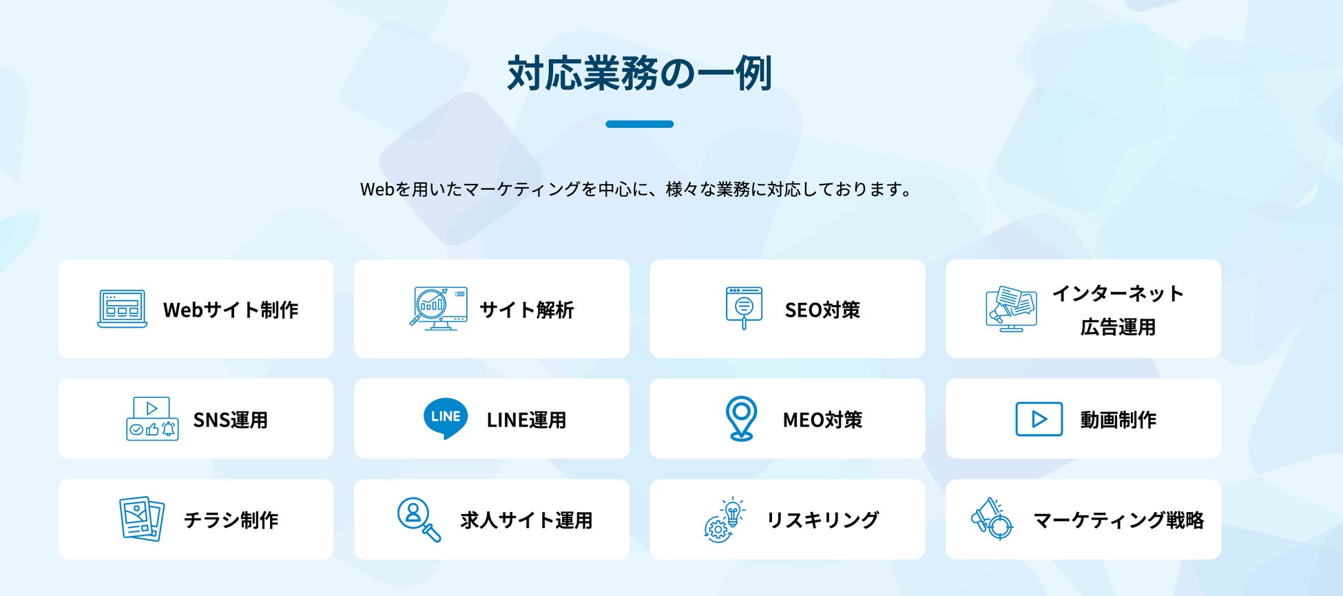 SNS運用、広告、MEO対策、Webサイト最適化、外国語翻訳、インフルエンサー活用など、観光事業者のニーズに応じて内容をカスタマイズし、専門チームがワンストップで支援します。