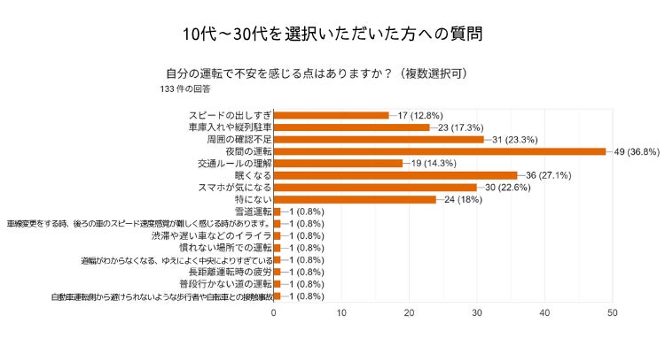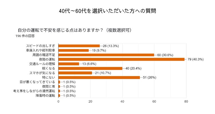 最も多くの人が選んだ不安:「夜間の運転」(45%)