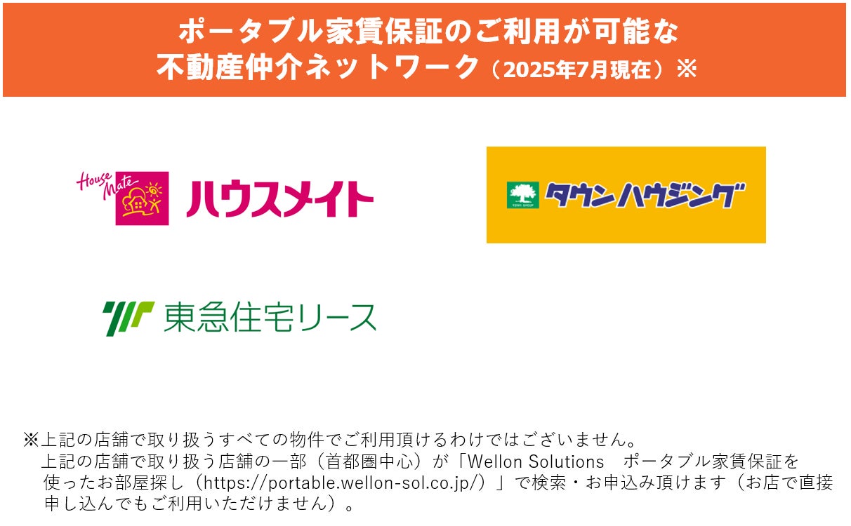 株式会社Wellon Solutions(本社:東京都中央区、代表取締役社長:平井 章治)は、2025年7月に東急住宅リース株式会社(本社:東京都港区、代表取締役社長:橋本 茂)と連携を開始しました。本連携により、東急住宅リース株式会社が管理する「コンフォリア」などの物件の一部で「ポータブル家賃保証」を利用できるようになります。物件検討・契約手続きの前に家賃保証を得て安心した部屋探しをサポートする「ポータブル家賃保証」がますます多くの皆様にご利用できるようになります。
