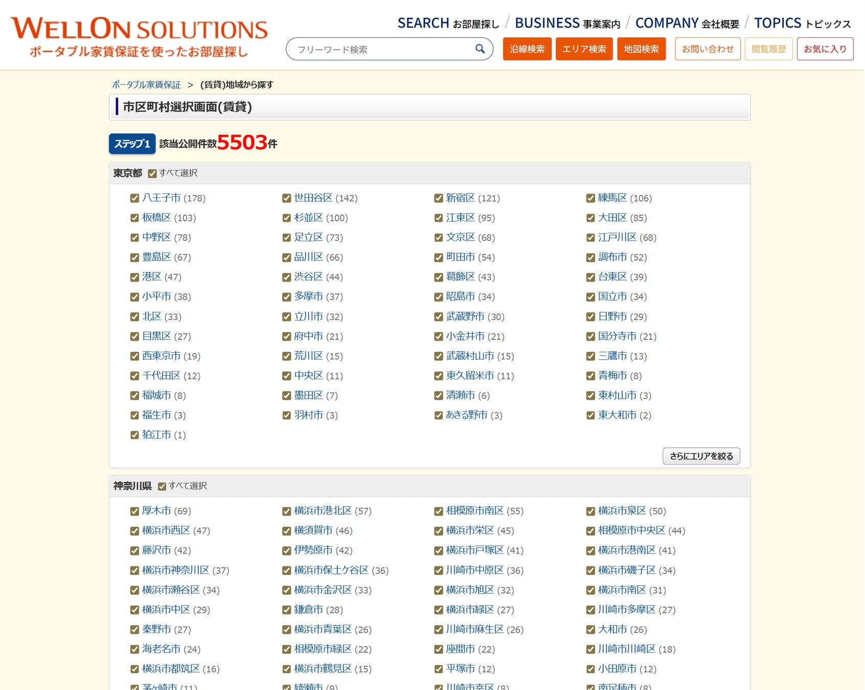 家賃保証の承認を得たのち、「Wellon Solutions ポータブル家賃保証を使ったお部屋探し(https://portable.wellon-sol.co.jp/)」にてご希望の物件を検索のうえ、事前に承認を得た家賃保証を用いて賃貸契約する流れとなります。