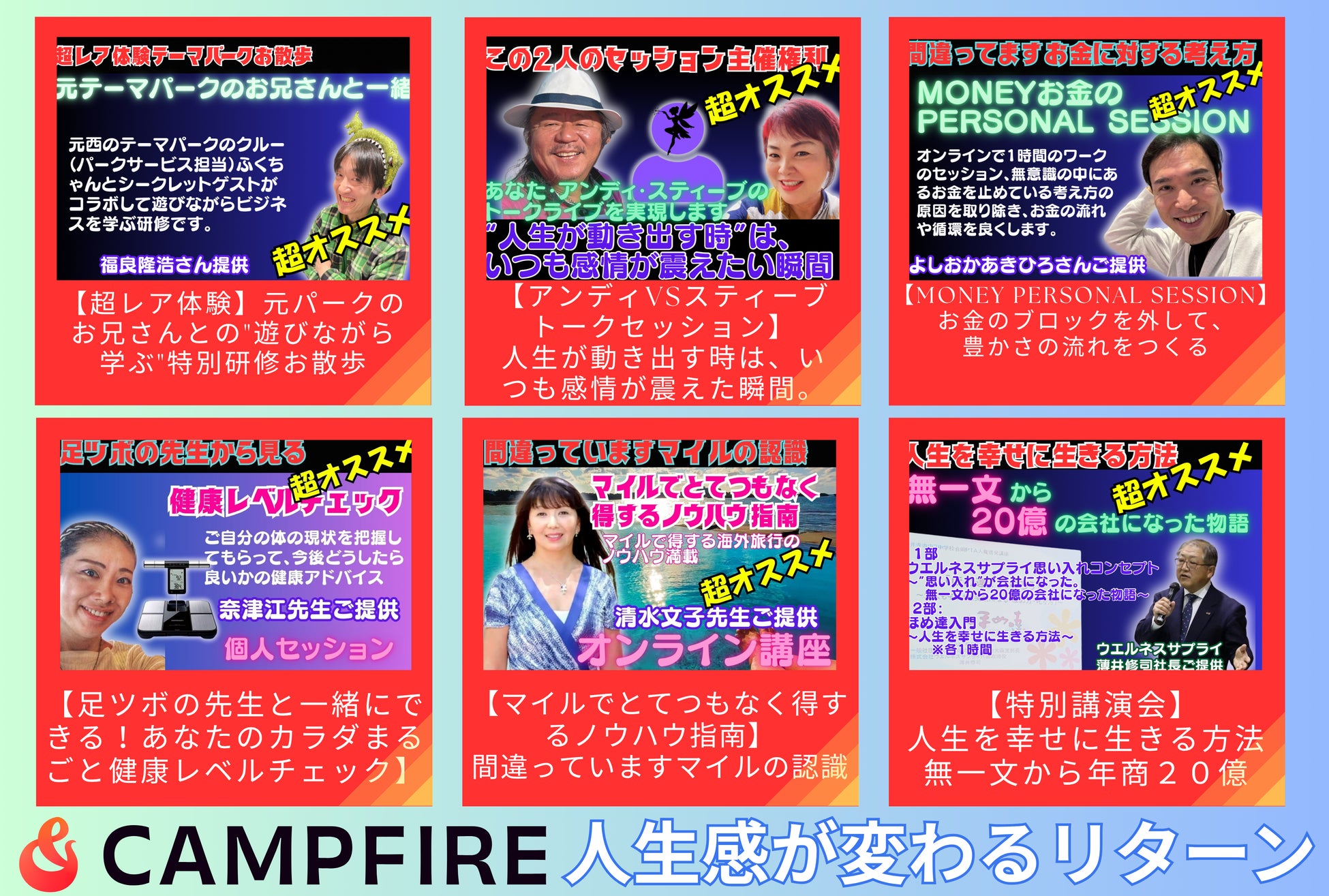 “未来の自分を応援するリターン”も多数ご用意しています。