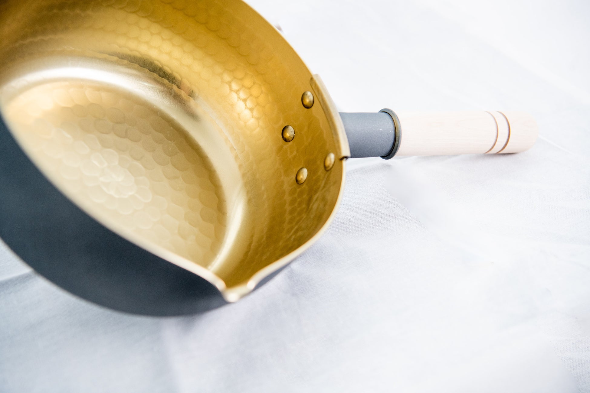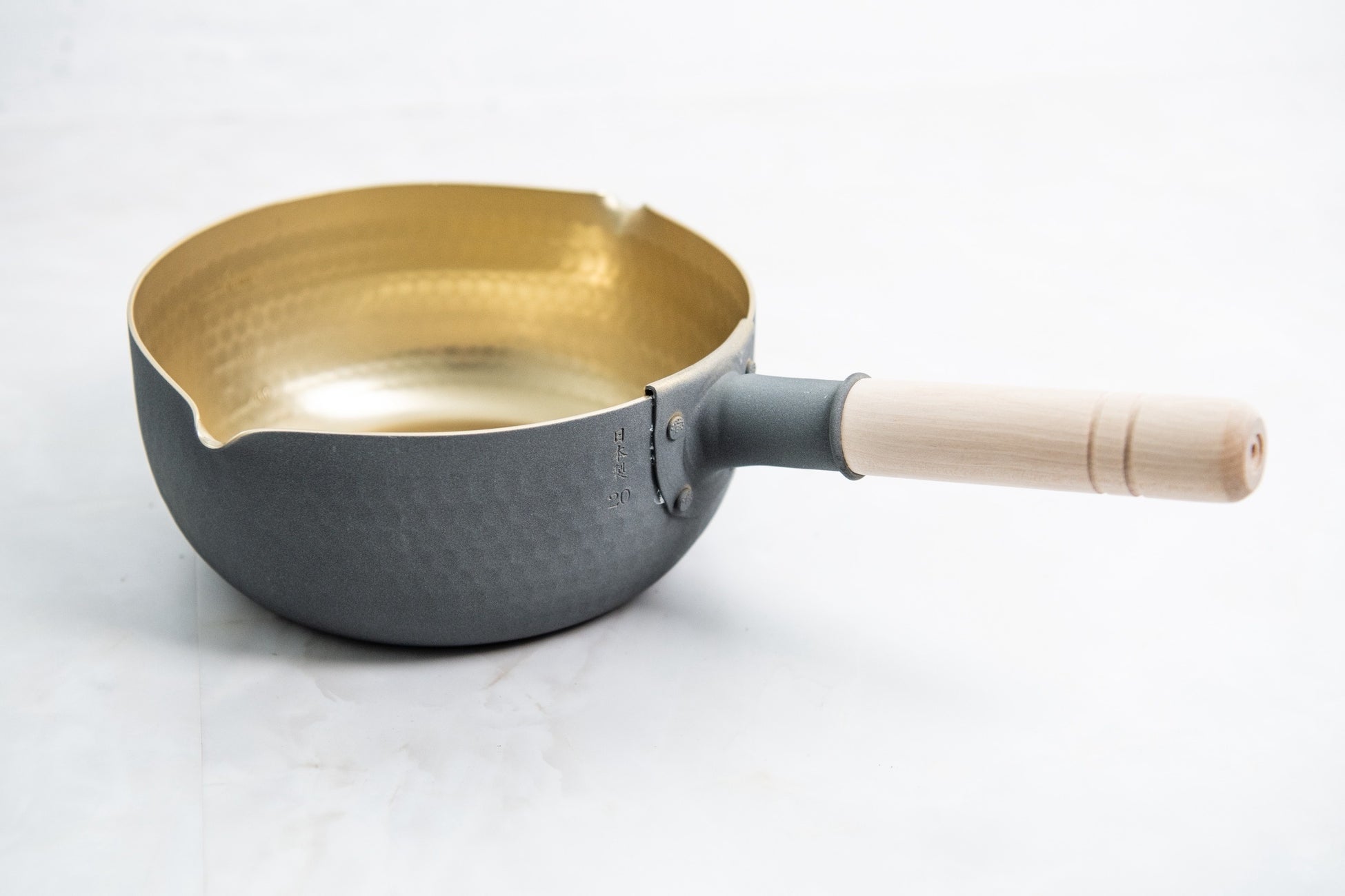 【スペック】外側は通常のアルマイト方法ですが、特殊な工程を行うことでまるで陶器のような雰囲気の梨地グレー色を表現できました。内側の蓚酸アルマイト(ゴールド色)は昭和の頃からヤカンに使われるアルマイト方法で唯一の無害な着色方法です。蓚酸アルマイトを施すことで食品による酸や塩分による腐食を強度に防止し、長期間にわたって美しい状態を保ちます。また、アルミの表面硬度が非常に硬くなり、表面はキズが付きにくくなります。ビッカースという硬さを表す数値があります。例えば自転車のフレー ムで使われるようなクロモリ鋼(SCM822)では~415程、析出硬化系ステンレス (SUS630)では~375程ですが、蓚酸アルマイトは~450となります。 鉄やステンレスよりも硬くなります!