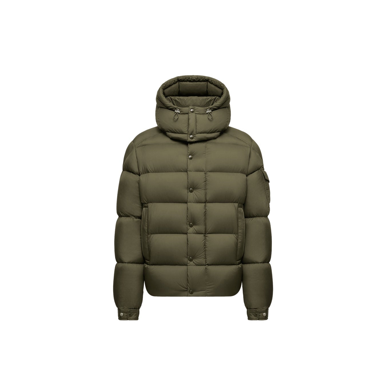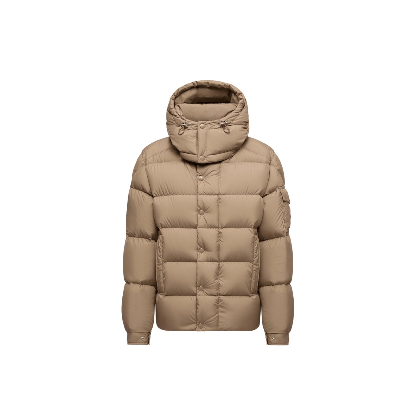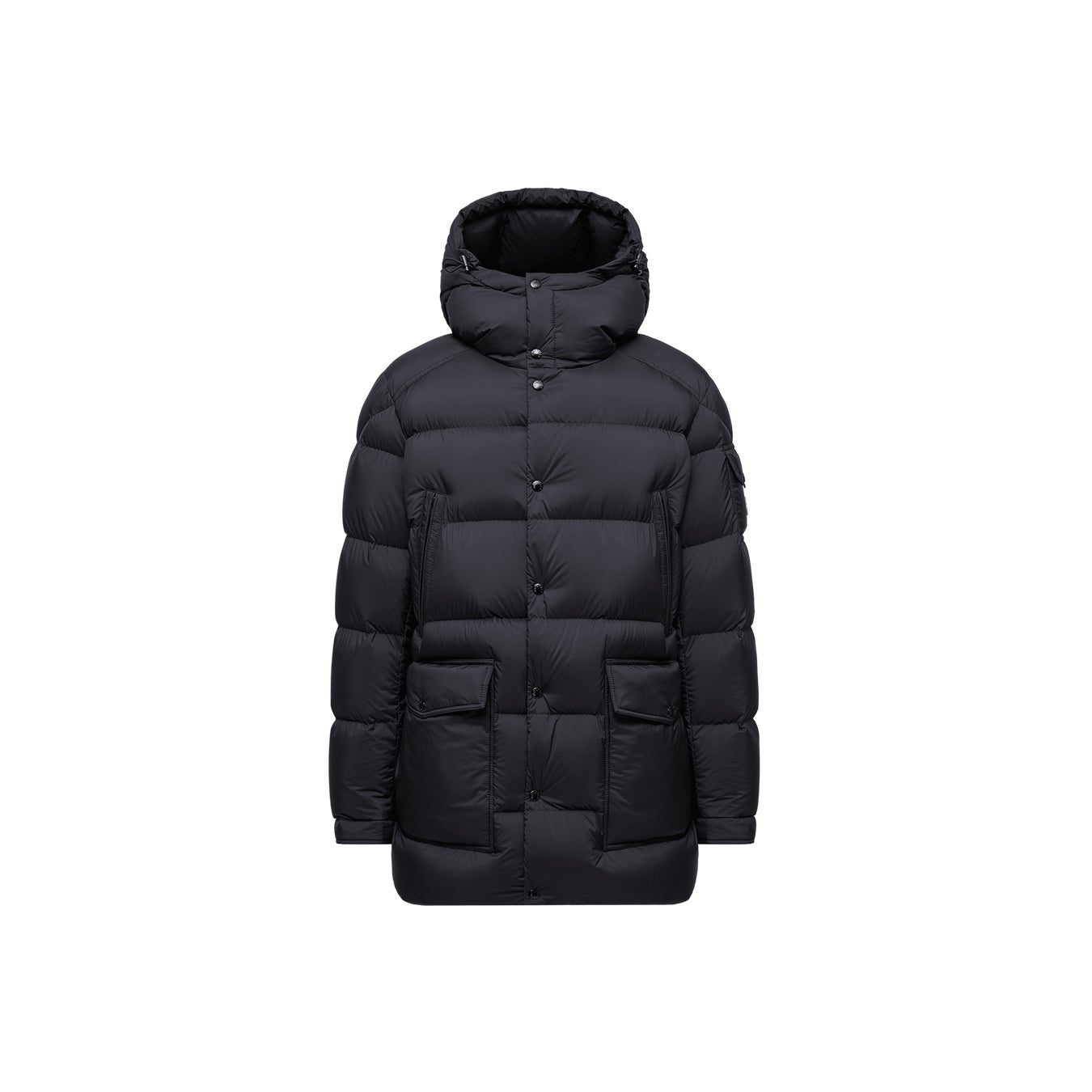ブランドのシグネチャーであるロングセゾンリサイクルナイロンを使用し、左袖のロゴ入りポケットや取り外し可能なフードを備えています。