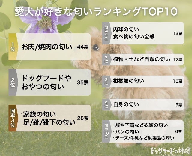 続く2位は「ドッグフード・おやつの匂い」です。その他にも多くの食べ物がランクインしていました。