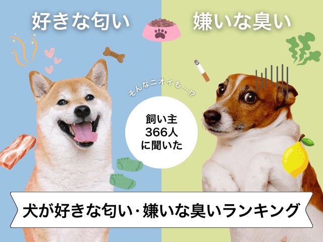飼い主366人へのアンケート調査で、78%が「愛犬に好きな匂いがある」、55%が「嫌いな臭いがある」と回答。