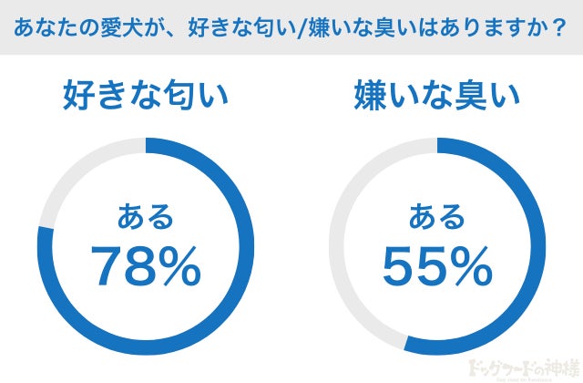 愛犬には好きな匂いがあるという回答は78%。嫌いな臭いがあるのは55%。