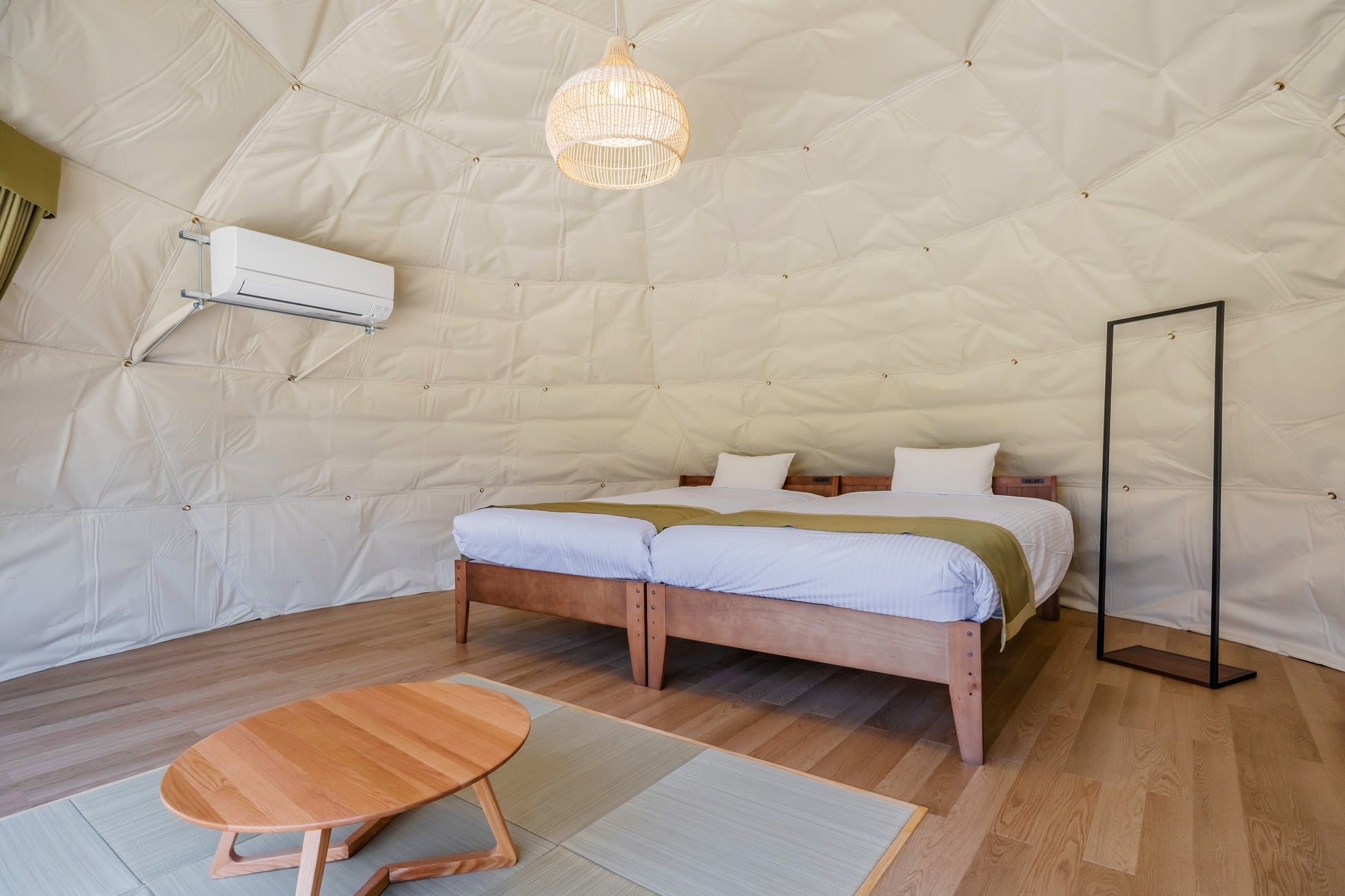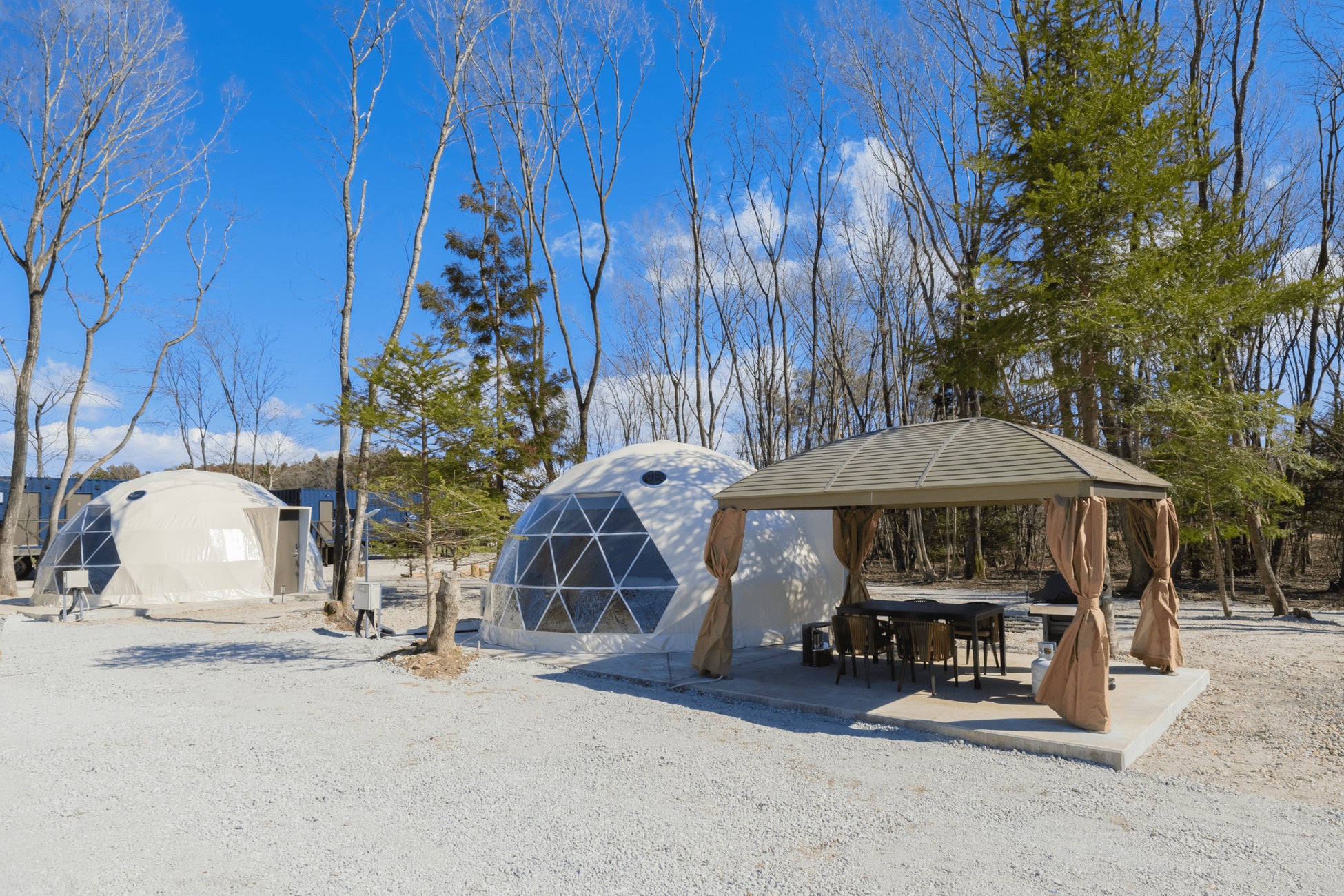 NAGOMI CAMPでは、那須の森林に囲まれた中にこれまでにはない「日本の和」を体験できるドームテントを1日4組限定でご用意しました。