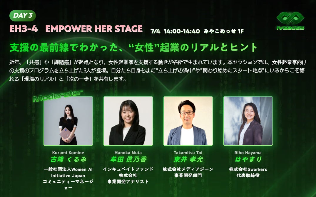 IVS2025「EMPOWER HER STAGE」において、注目セッションをご紹介します。