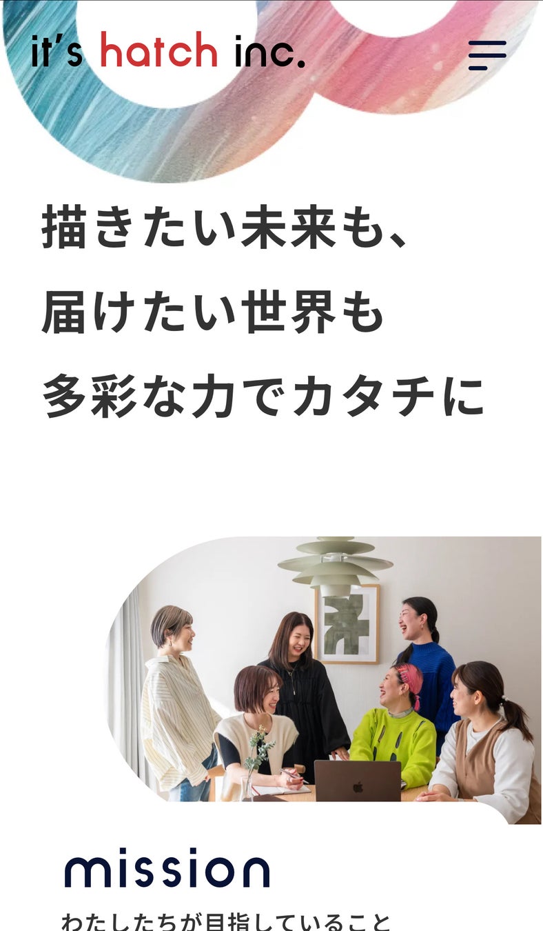 それぞれが自分の「好き」や「得意」をかけ合わせ、自分らしい働き方を実現しており、この姿こそがit's hatchのコンセプト「カラフル。なのに、まとまってる。」を体現しています。