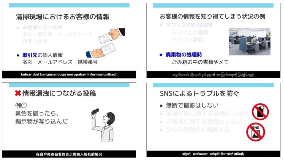 DC株式会社(本社:東京都江戸川区、代表取締役社長:石川 学)は、こうした社会課題の解決に向け、外国人清掃スタッフが母語で学べる教育サービス「SOKOKARA清掃スタッフコース」(多言語版)の提供を開始しました。