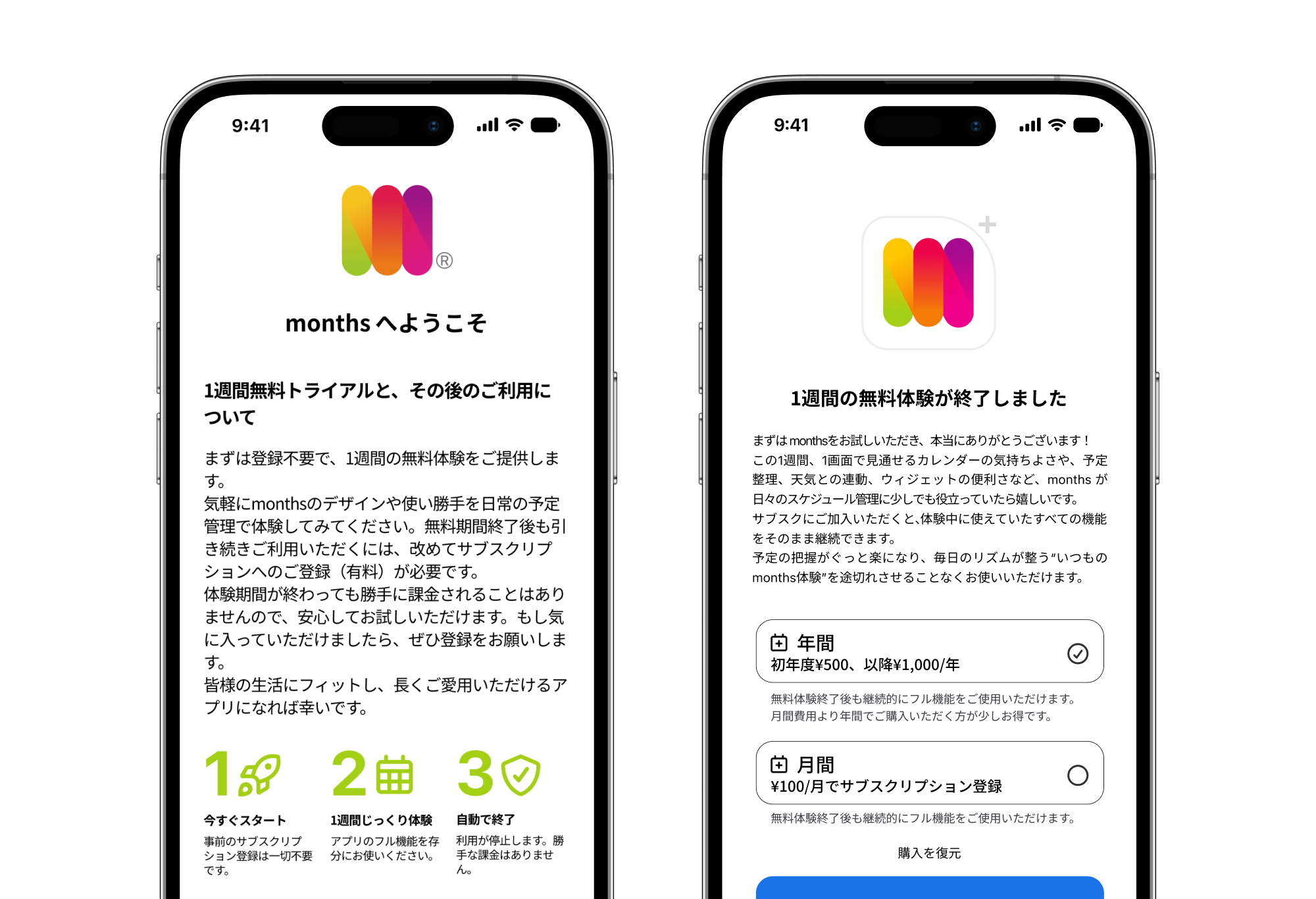 iPhone専用カレンダーアプリ「months(マンス)」は、進学や就職、お引っ越しなどで生活環境が大きく変わる春の新生活シーズンに向け、2026年3月1日(日)から3月31日(火)までの期間限定で、プレミアムプラン(年額)が通常の半額となる「新生活応援キャンペーン」を実施いたします。