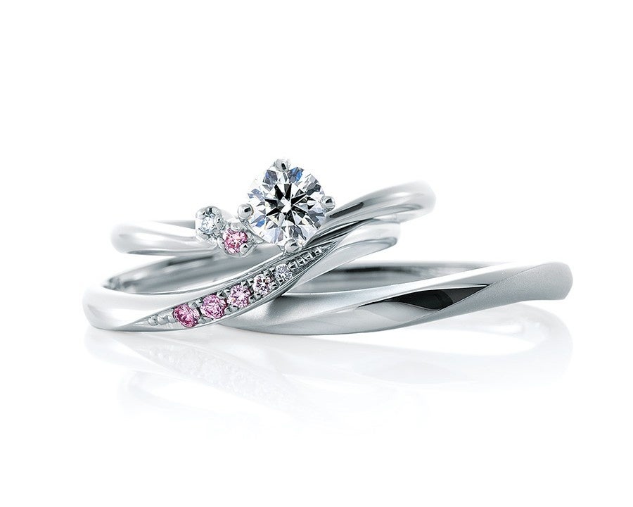 その希少性の高さから、多くの女性の憧れであるピンクダイヤモンドを贅沢に使用。CAFERINGが選んだ小さなピンクの光は主役のダイヤモンドの輝きを、よりフェミニンに、よりエレガントに輝かせます。