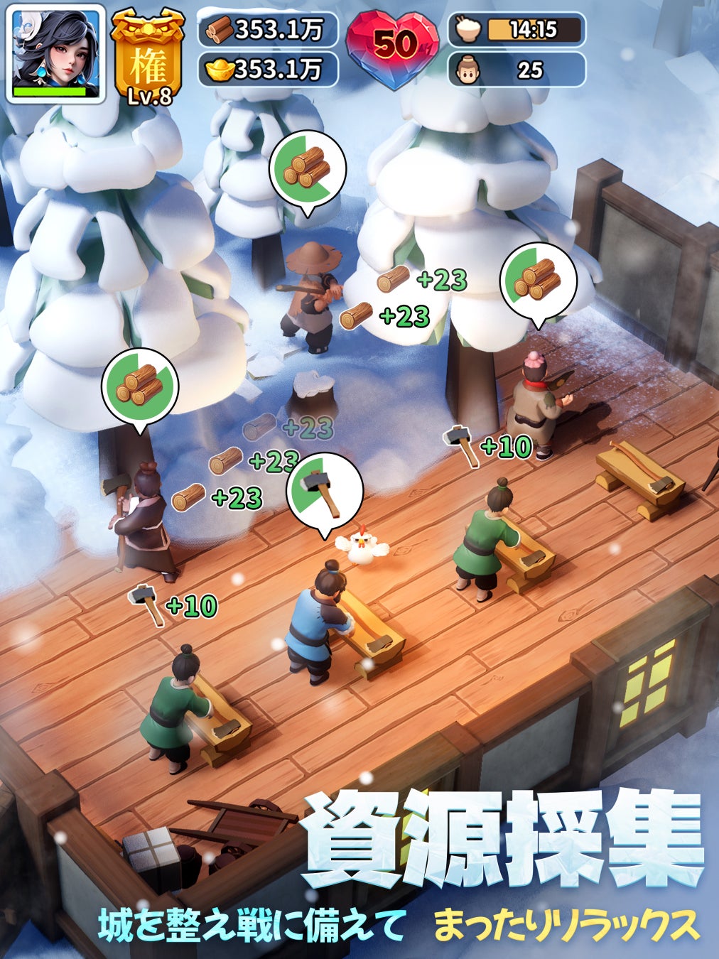 ゲーム内には多彩な建設システムがあり、火炉を建てることで氷雪の中でも城の運営を維持できます。伐採、狩猟、採掘といった資源活動が、火炉の建設に必要な資源を絶え間なく供給します。さらに、プレイヤーはおなじみの三国武将と出会って登用し、彼らに兵を率いてボス討伐や外部探索、領土拡大を行わせ、より多くの資源を手に入れて城の発展を支援することができます。