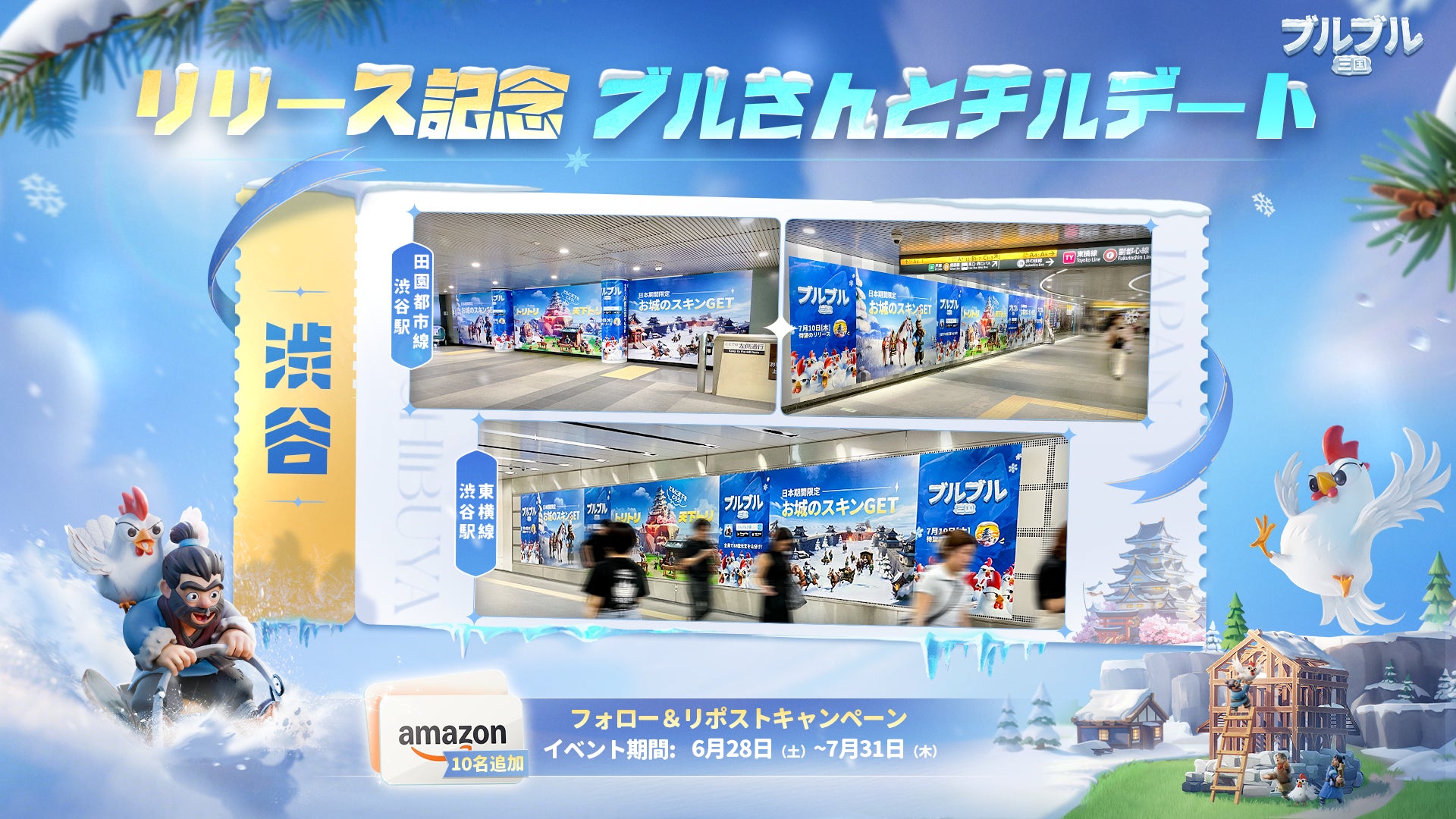 正式サービス開始を記念して、地下鉄での広告掲載が7月20日まで行われます。Xでは同時にチェックインキャンペーンも実施中です。ぜひ実際に街で『ブルブル三国』に出会って、ひんやり涼しい夏を楽しんでくださいね!