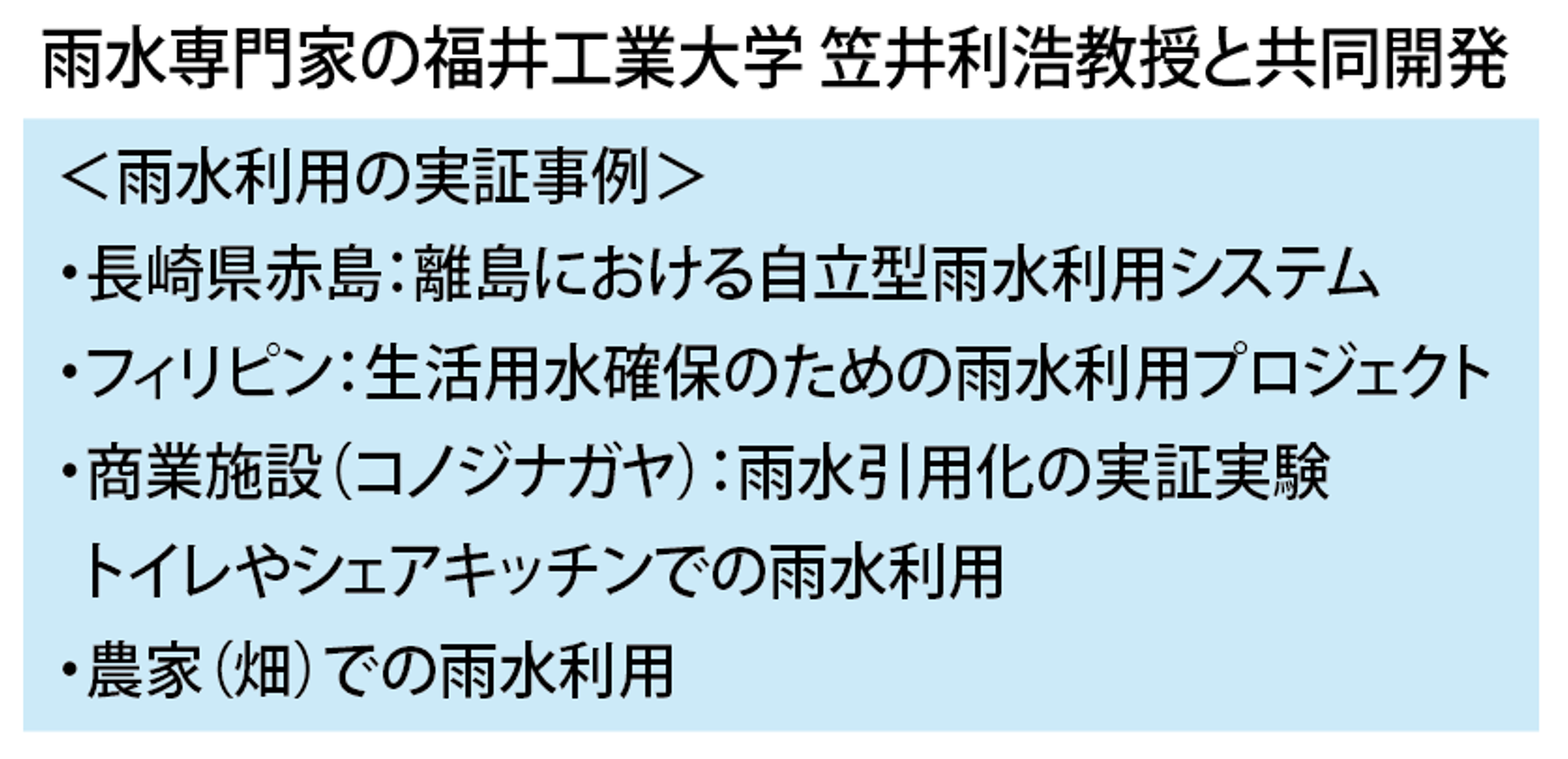 2. 雨水利活用の権威、福井工業大学・笠井教授との共同開発