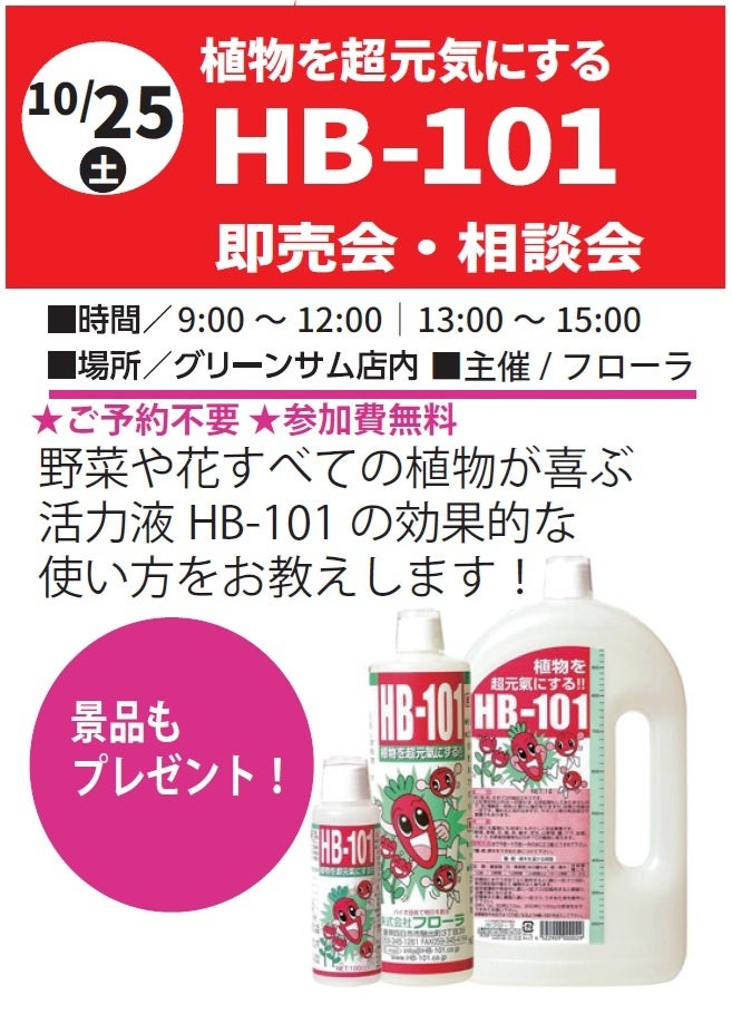 人気の活力剤「HB-101」の使い方や効果をスタッフが直接ご案内します。