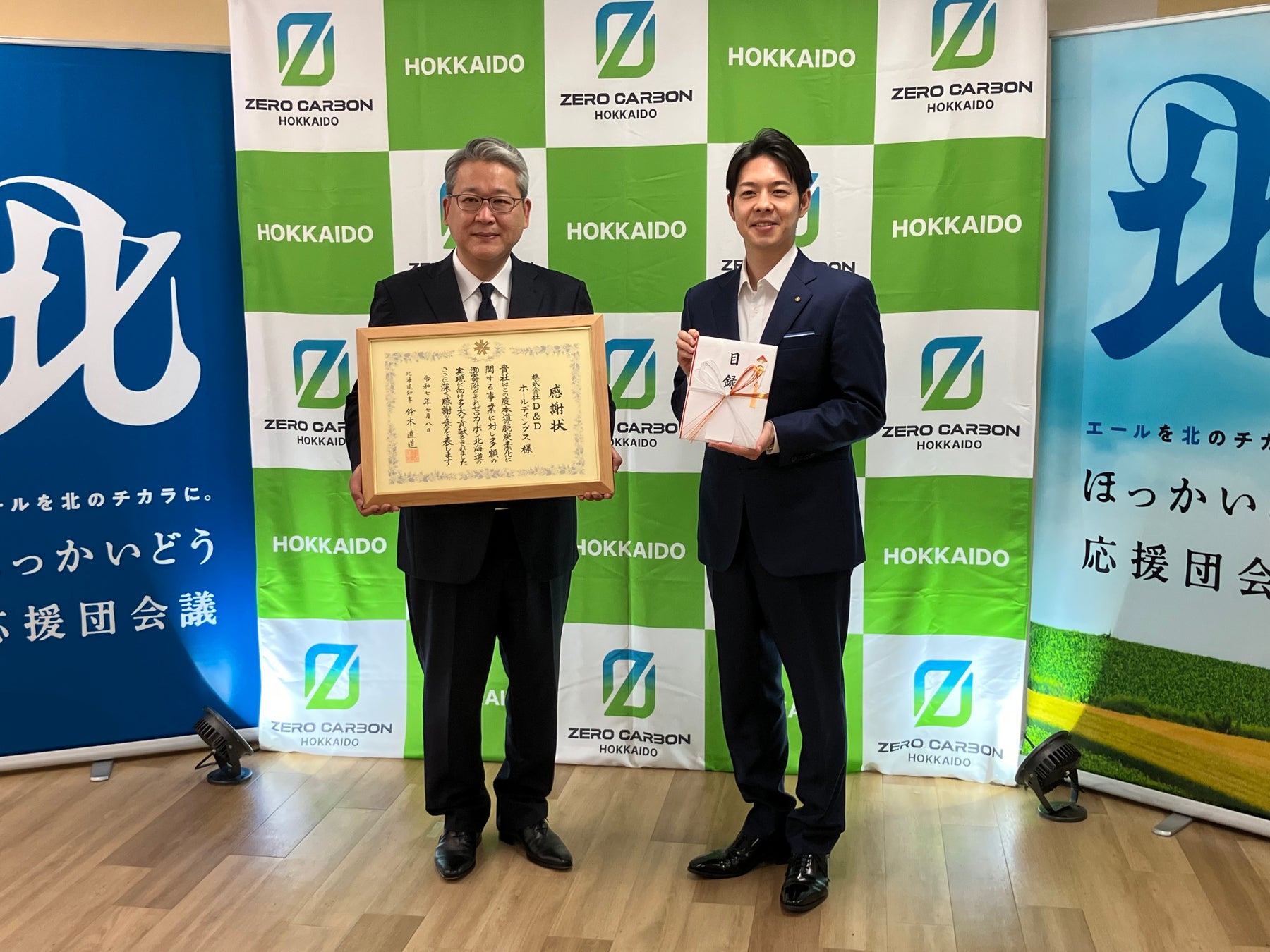 株式会社D&Dホールディングス(本社:東京都中央区、代表取締役社長:竹村嘉規)は、企業版ふるさと納税を通じて北海道の「ゼロカーボン北海道の実現に向けた事業」へ寄附を行いました。これを受け、2025年7月8日(火)に北海道庁にて感謝状の贈呈式が行われました。