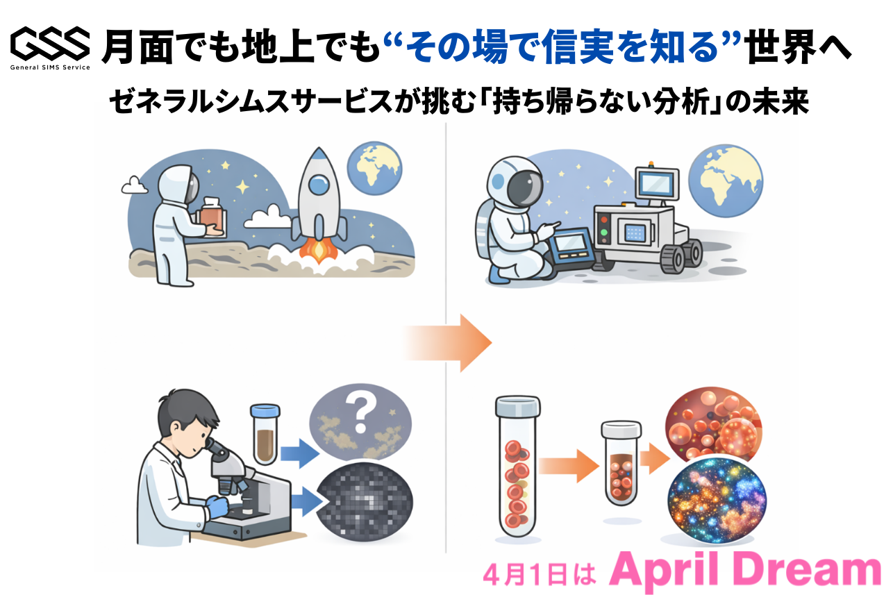 ゼネラルシムスサービス株式会社(本社:神奈川県横浜市、代表取締役:井上 信孝)は、SIMS(二次イオン質量分析法)技術を核とした装置の小型化・高感度化により、分析を「持ち帰るもの」から「その場で行うもの」へと変革することを目指します。 月面での水資源調査から、地上の精密医療まで、人類が「その場で真実を知る」時代の到来を創造します。