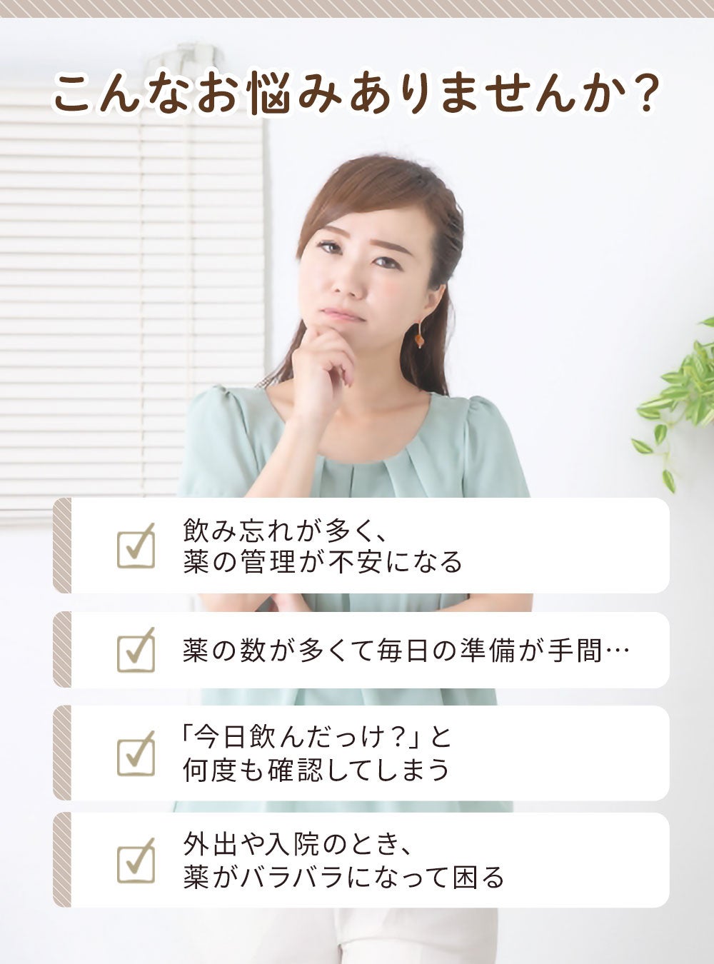 ・カレンダー感覚で視覚的に服薬状況が一目瞭然のため、服薬忘れや重複服用のリスクも防止。