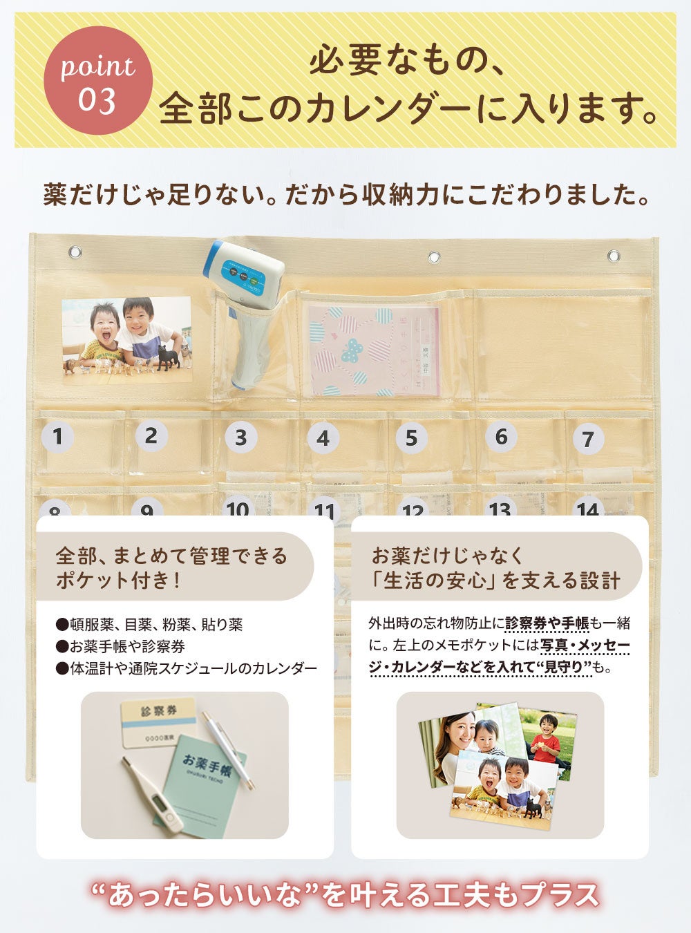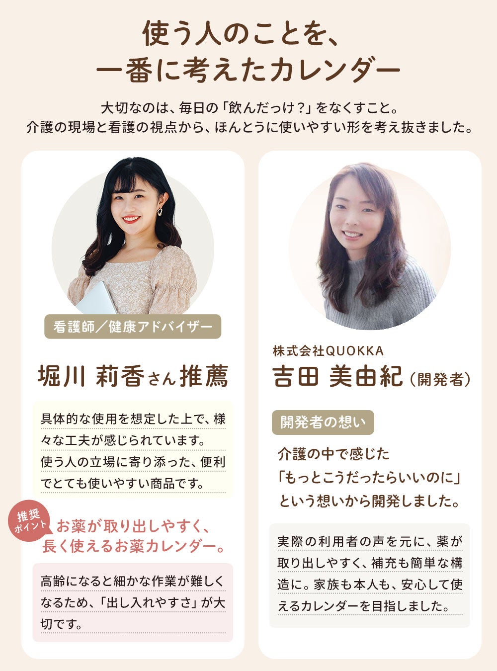 「お薬カレンダー」シリーズは、介護経験者のリアルな声と看護師の推奨から生まれたロングセラー商品です。