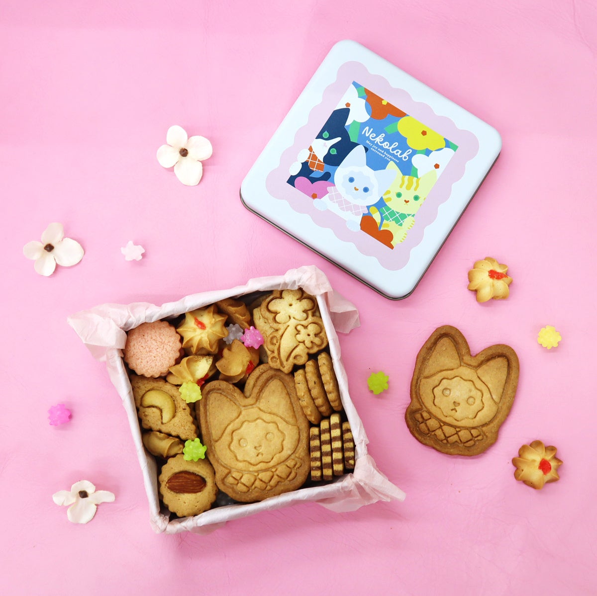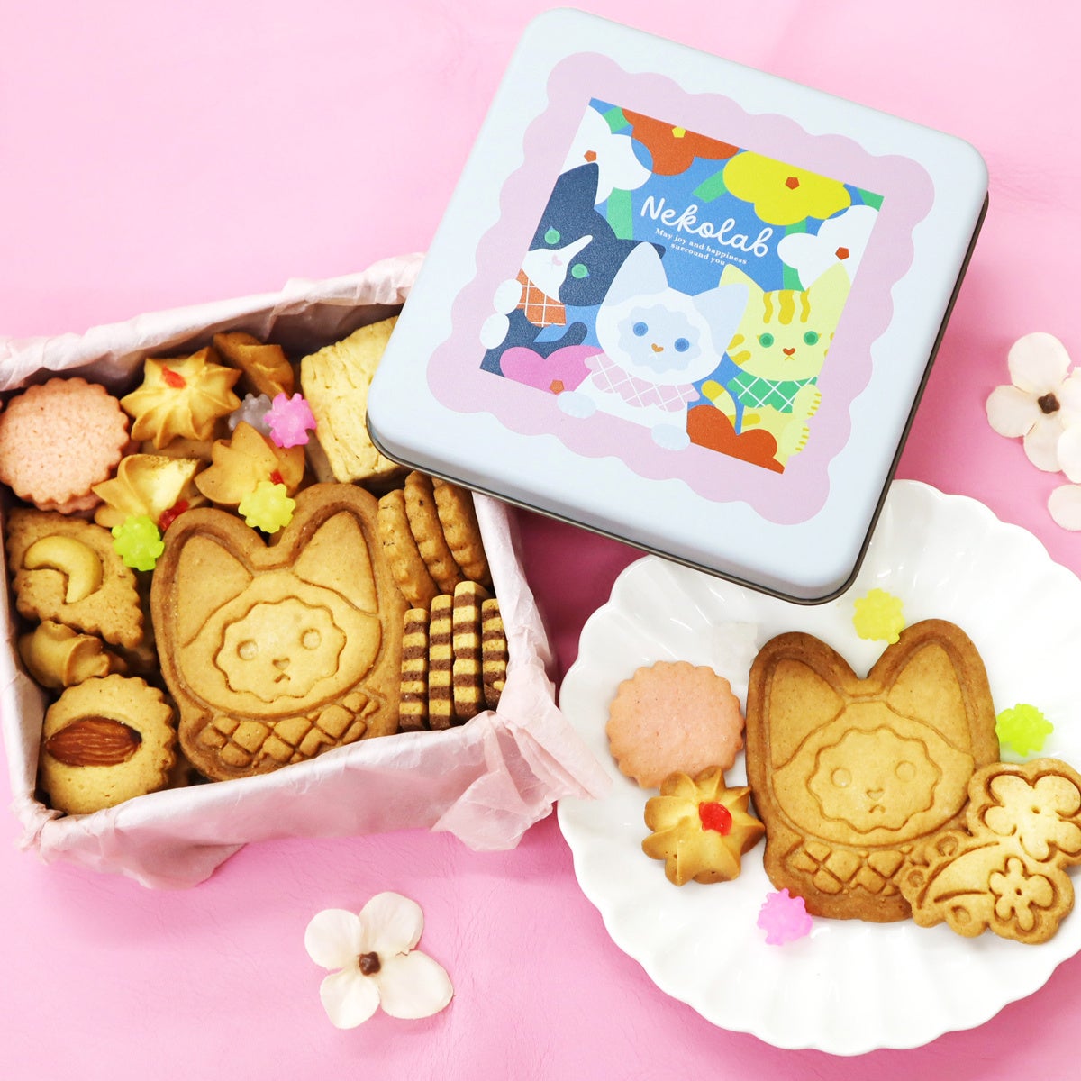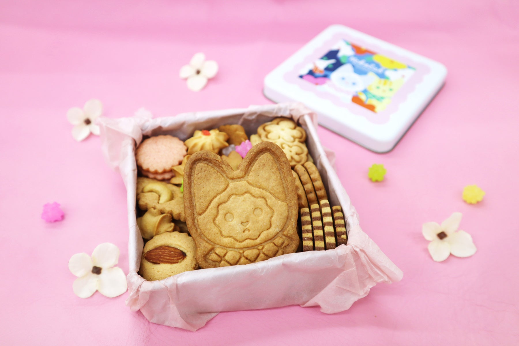 缶の中には、その型で焼き上げた このコラボのためだけの特別な猫クッキーを詰め合わせています。