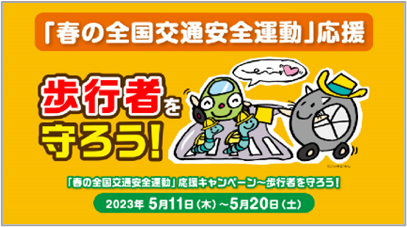 2023年の内閣府推進「春の全国交通安全運動」の重点項目のひとつである「こどもを始めとする歩行者の安全の確保」に協力するため、「歩行者を守ろう!キャンペーンを実施しました。