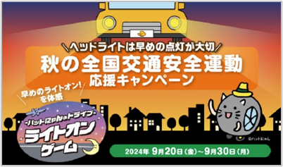 2024年の内閣府推進「秋の全国交通安全運動」の重点項目のひとつに掲げられている「ヘッドライトの早期点灯」に協力するため、ヘッドライトの早めの点灯を体感できるゲームを作り、「秋の全国交通安全運動」を応援しました。