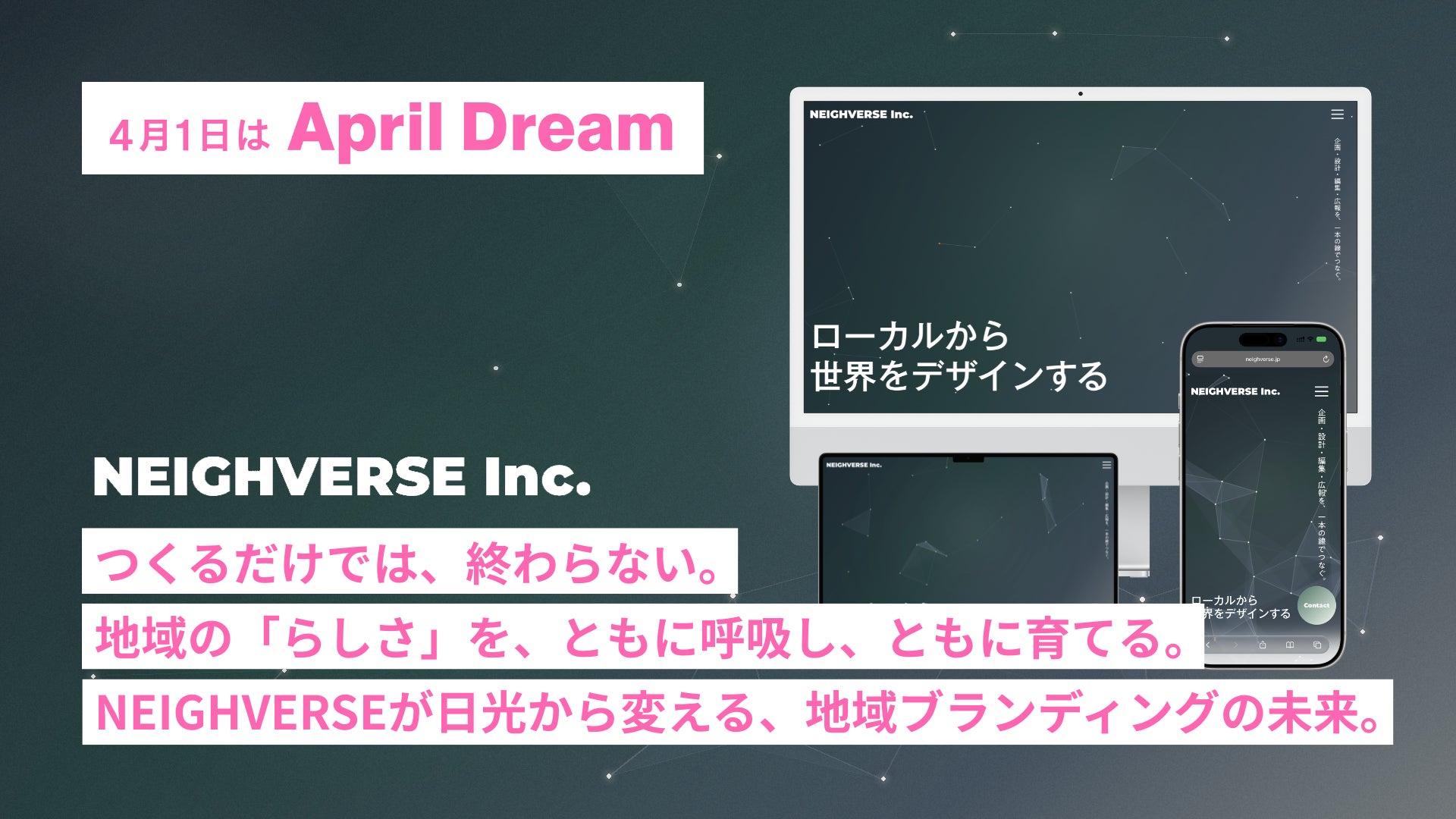 当社は、4月1日を夢を発信する日にしようとするApril Dreamに賛同しています。このプレスリリースは「NEIGHVERSE株式会社」の夢です。