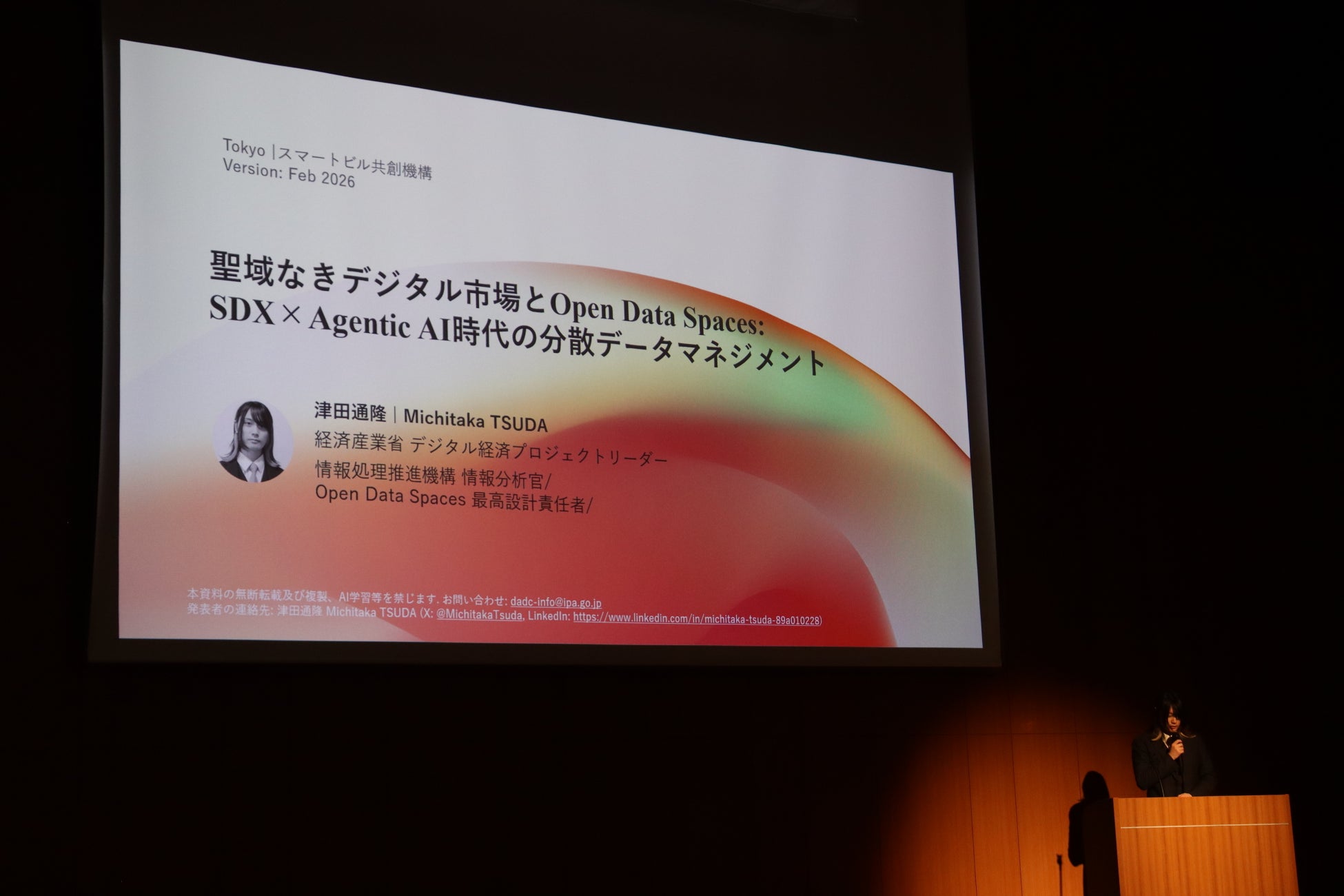 IPA(独立行政法人情報処理推進機構)DADC 情報分析官の津田通隆氏にご登壇いただき、『聖域なきデジタル市場とOpen Data Spaces: SDX×Agentic AI時代の分散データマネジメント』という未来を見据えたテーマにてご講演いただきました。スマートビル普及へのカギと示唆に富む講演内容となり、会場は深い関心を寄せていました。