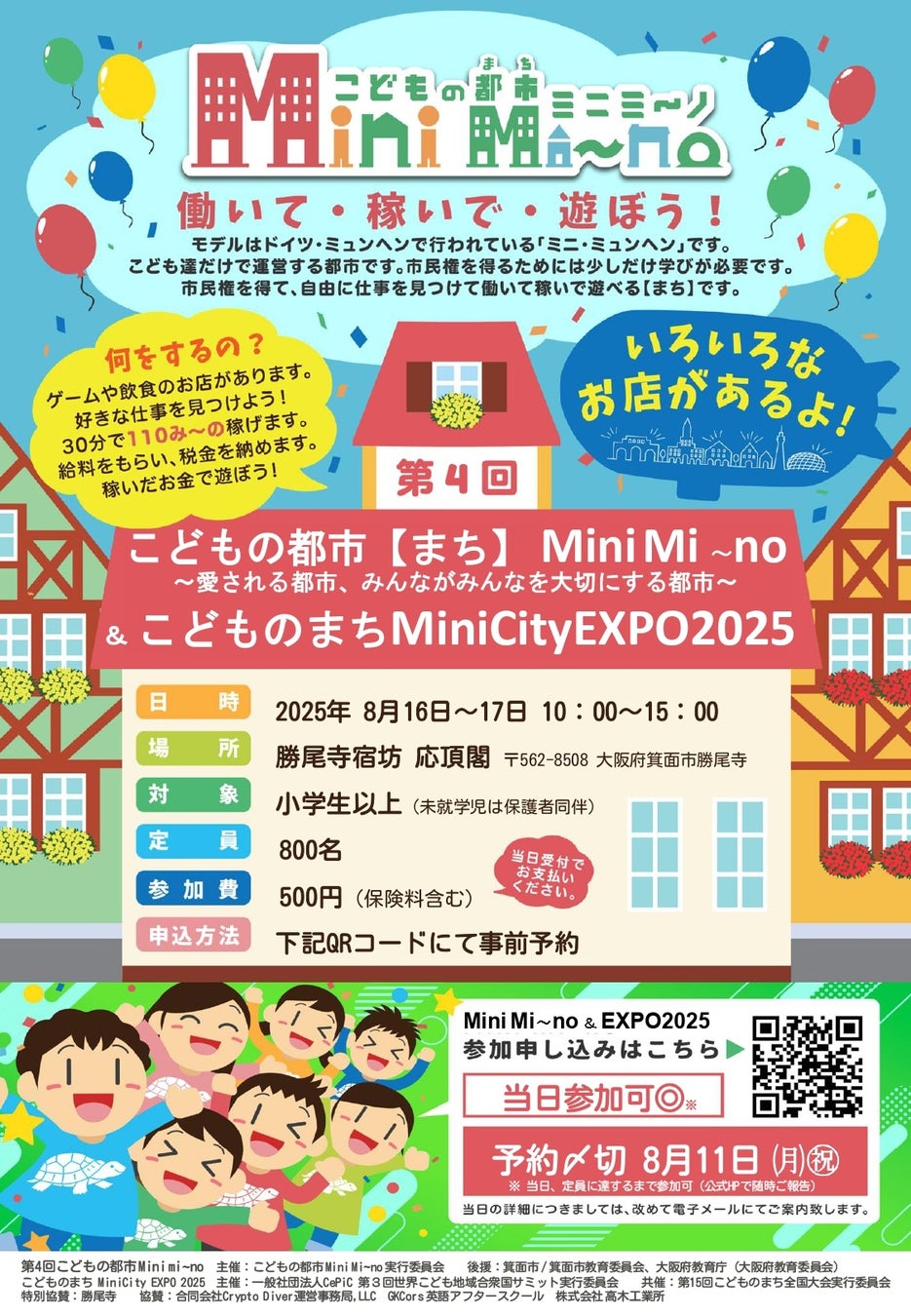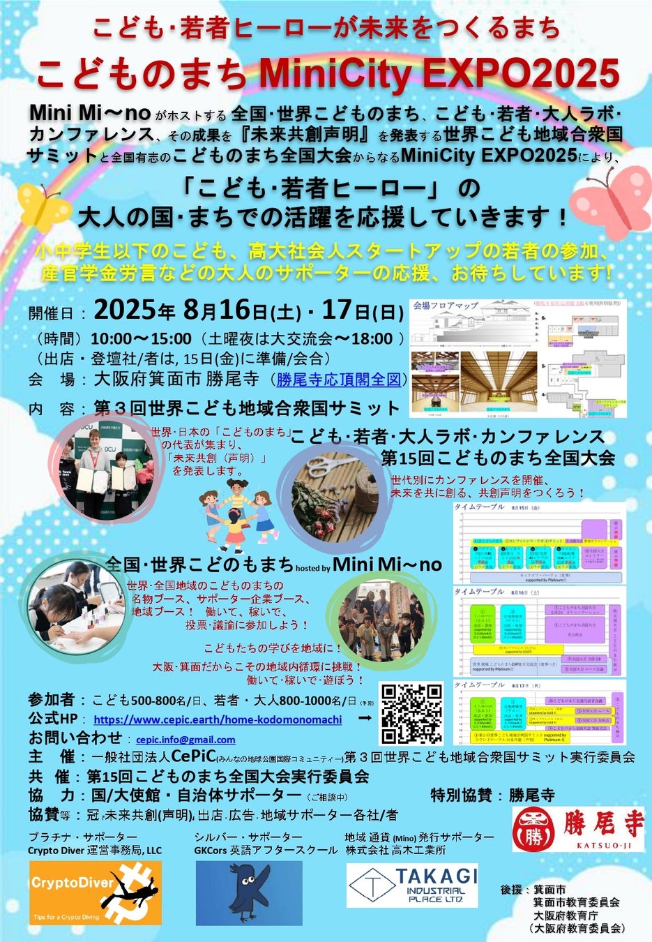 こども・若者ヒーローが未来をつくるまちへ!『こどものまち MiniCity EXPO2025』&第3回世界こども地域合衆国サミット 8月16日・17日、大阪・箕面市 勝尾寺で開催!