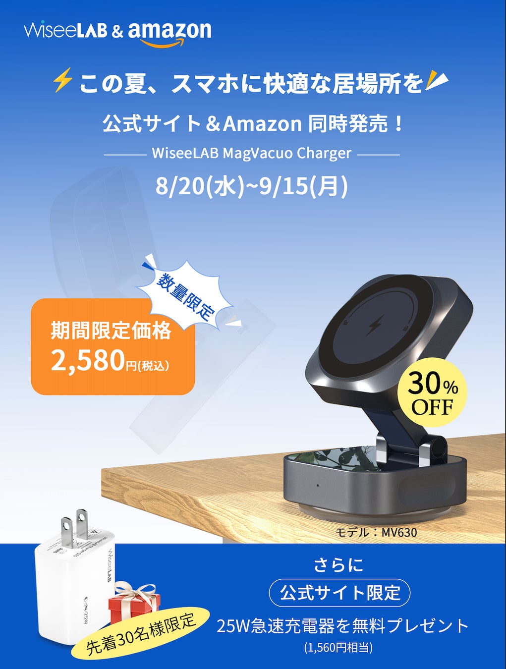 公式サイトURL:https://www.wiseelab.shop/products/magvacuo-charger-mv630