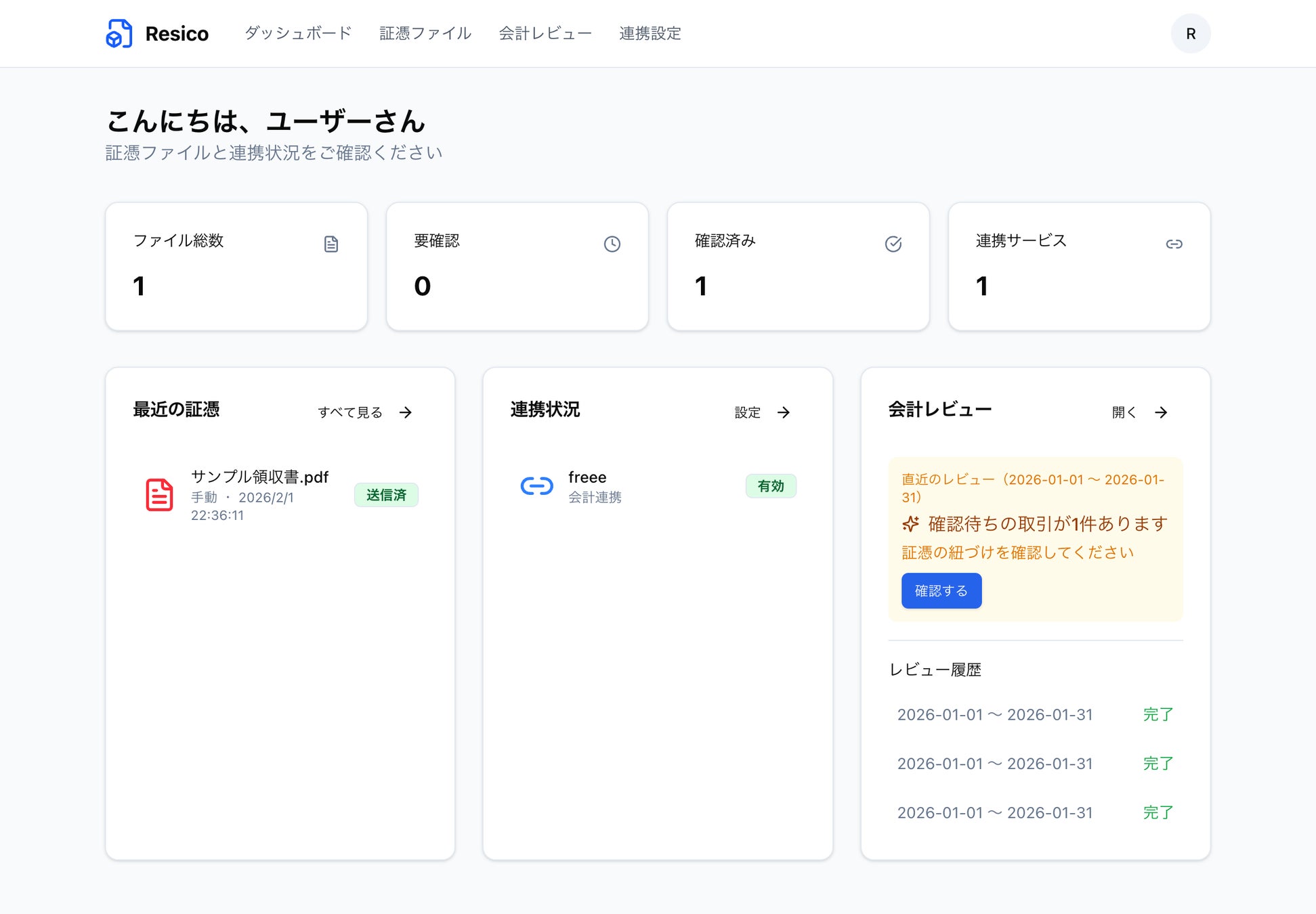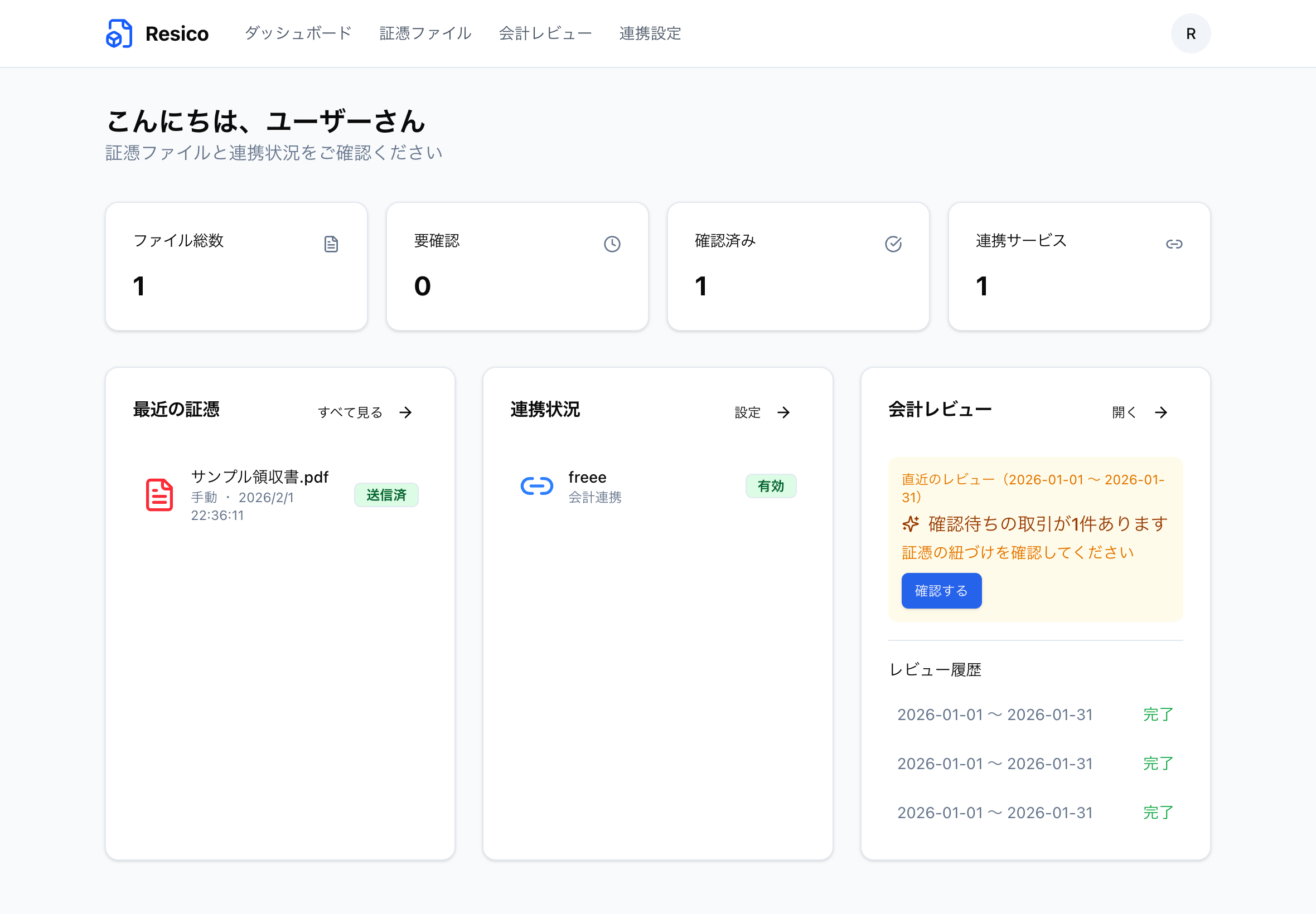 Resicoは、証憑の収集から確認、会計ソフトへの紐づけまでを自動化・効率化し、顧問税理士がいなくても安心して決算に臨める環境を提供します。