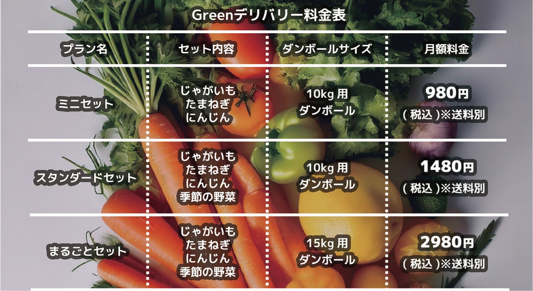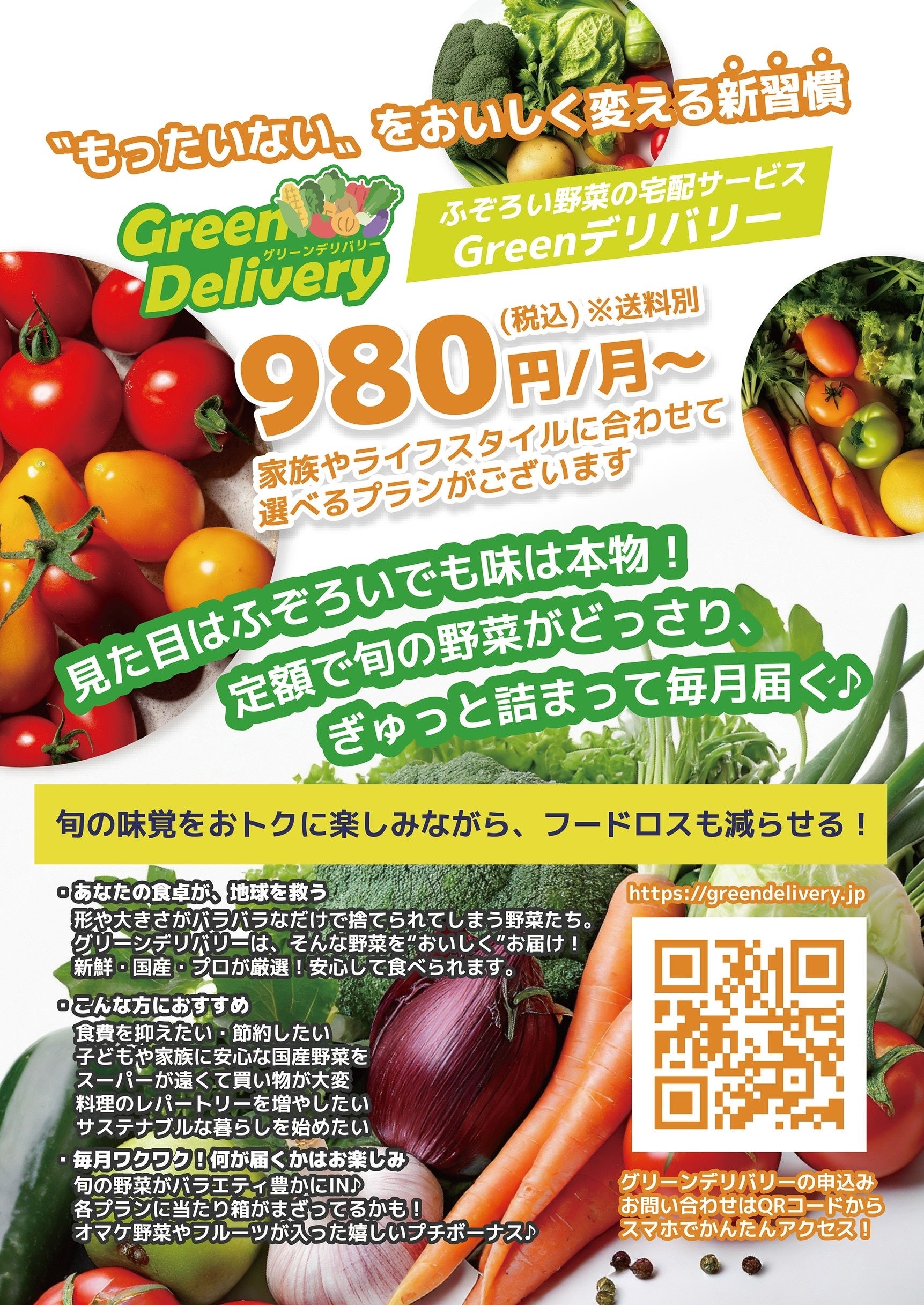 “ふぞろい"でも栄養満点な国産野菜を、野菜高騰時代の強い味方、そしてフードロス削減を実現するサブスクリプションサービス『GREENデリバリー』