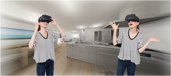 住宅検討者は、フォトリアルパースや360度パノラマイメージ、3Dモデルなどを⾒学しながらスムーズ且つスピーディな住まい検討が⾏えます。