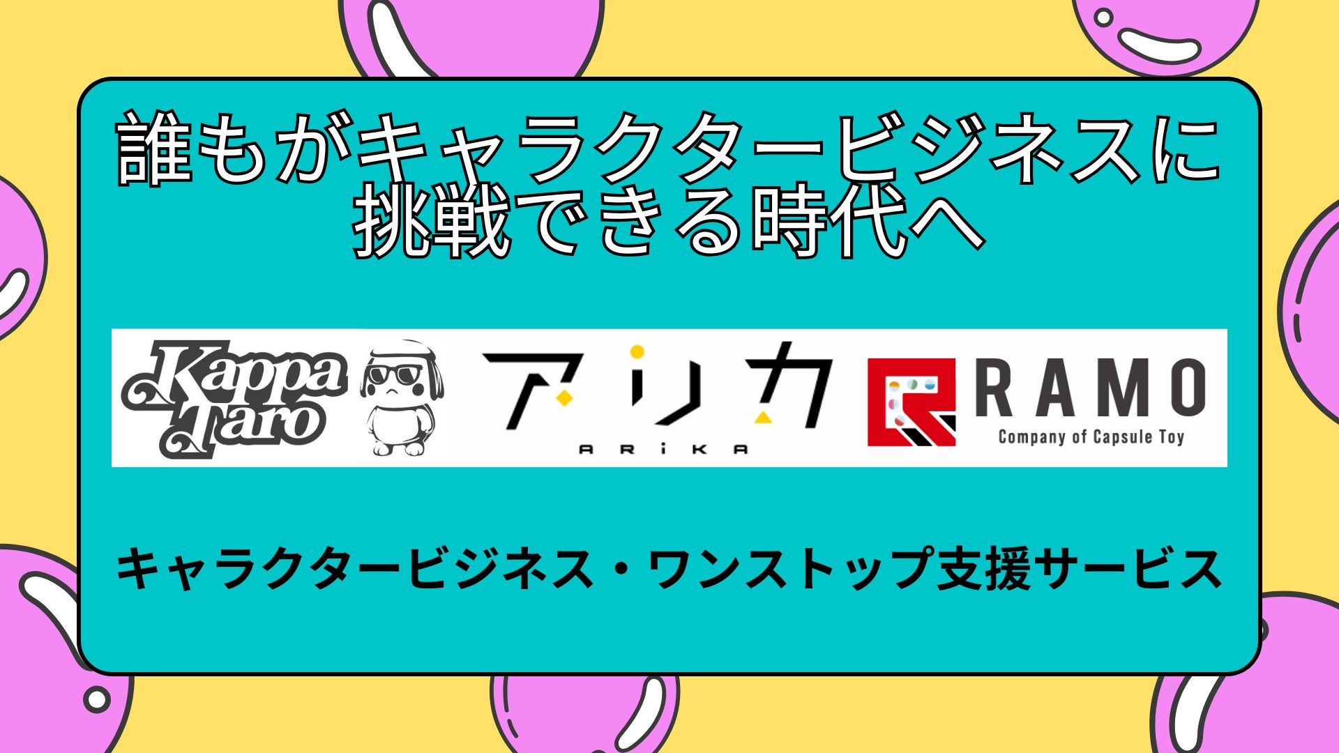 AIアニメーション動画制作とキャラクターデザインを手がける株式会社かっぱ太郎(本社:兵庫県神戸市、代表取締役:権藤 歩)は、株式会社アリカ(本社:兵庫県神戸市、代表取締役:中嶋 翼)、RAMO(本社:兵庫県神戸市、代表:川本 裕紀)と業務提携し、中小企業や自治体、店舗などを対象とした「キャラクタービジネス・ワンストップ支援サービス」を2025年11月12日より提供開始します。本サービスは、キャラクターの制作・活用に課題を持つ事業者の皆さまに、企画からデザイン、SNS運用、グッズ制作・販売までを一貫して支援するものです。