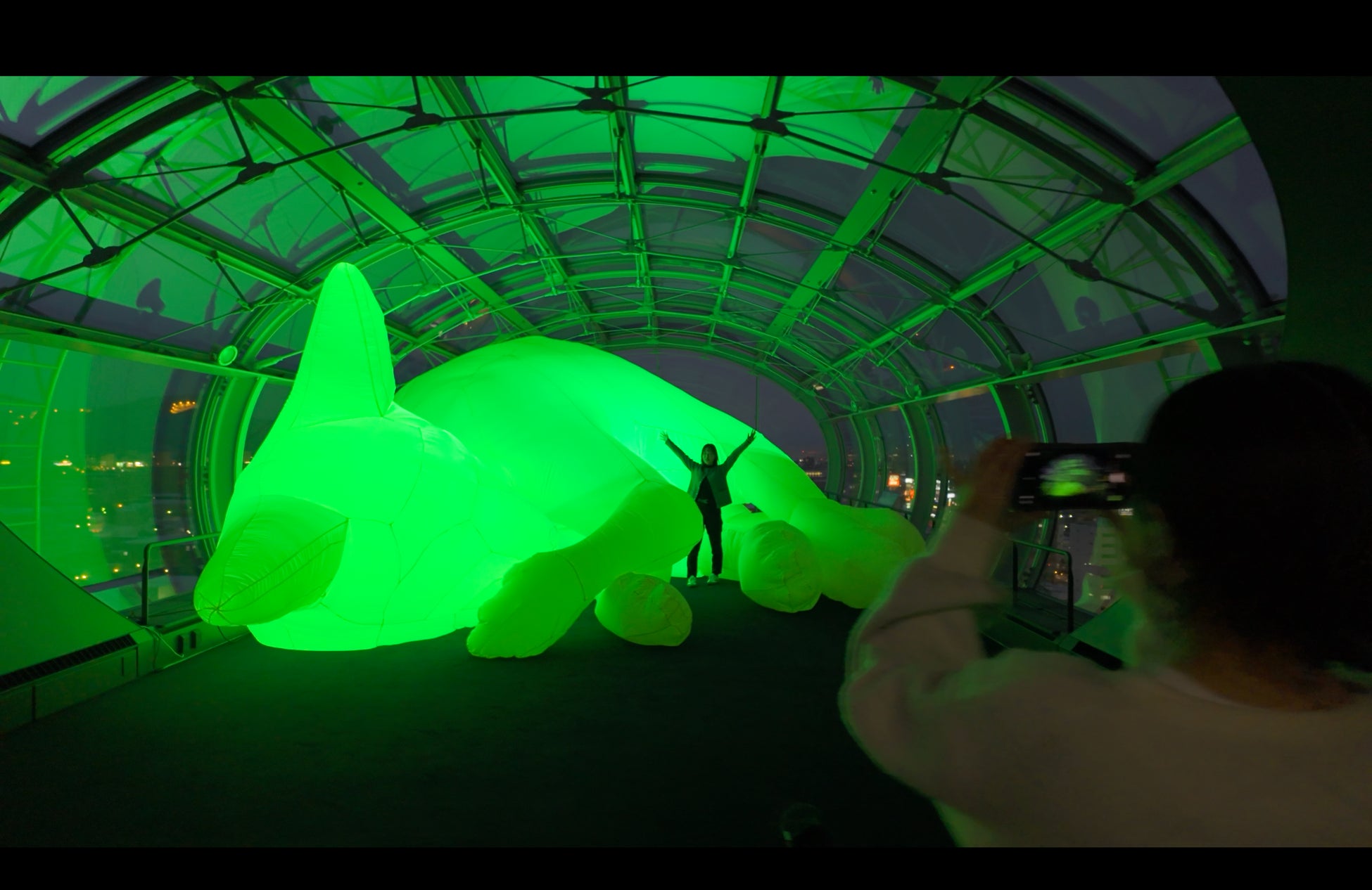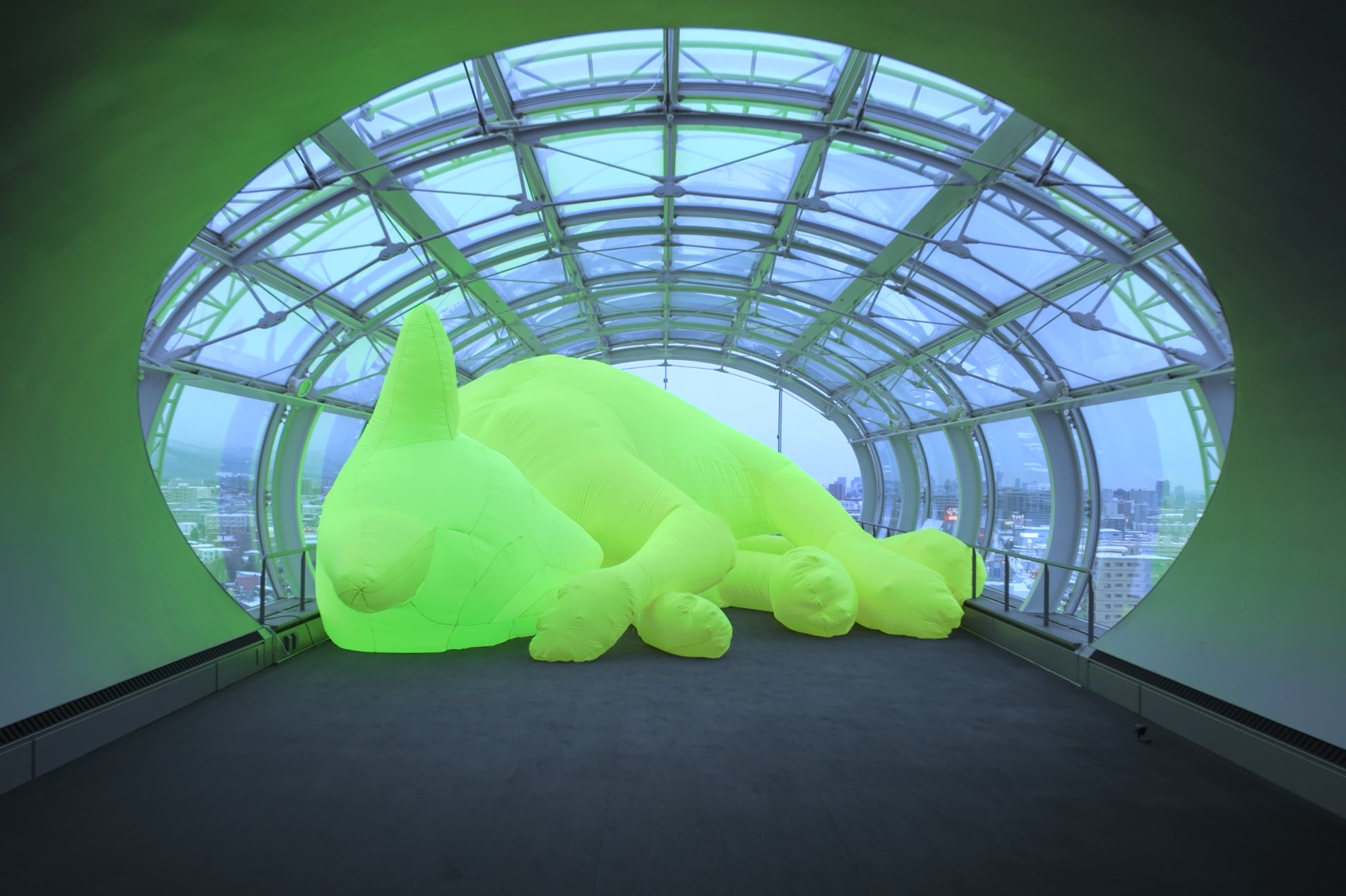 札幌市内を一望できる大和ハウス プレミストドームの展望台に、WA!moto. Motoka Watanabeによる巨大な猫のインフレータブル彫刻「OU-CNI.」が出現します。