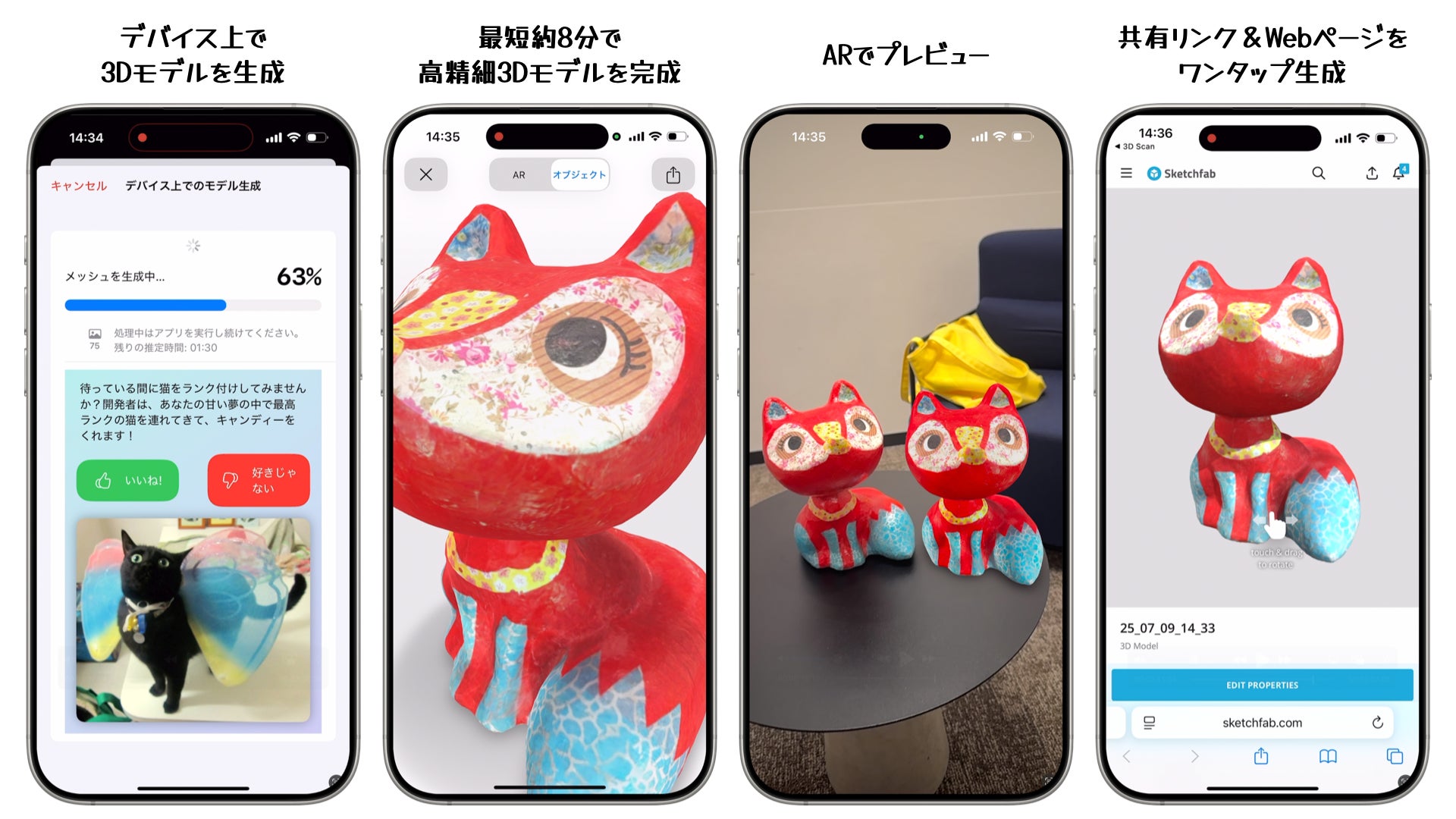 └ エクスポート形式:USDZまたはOBJ+テクスチャでプロ向け編集に対応