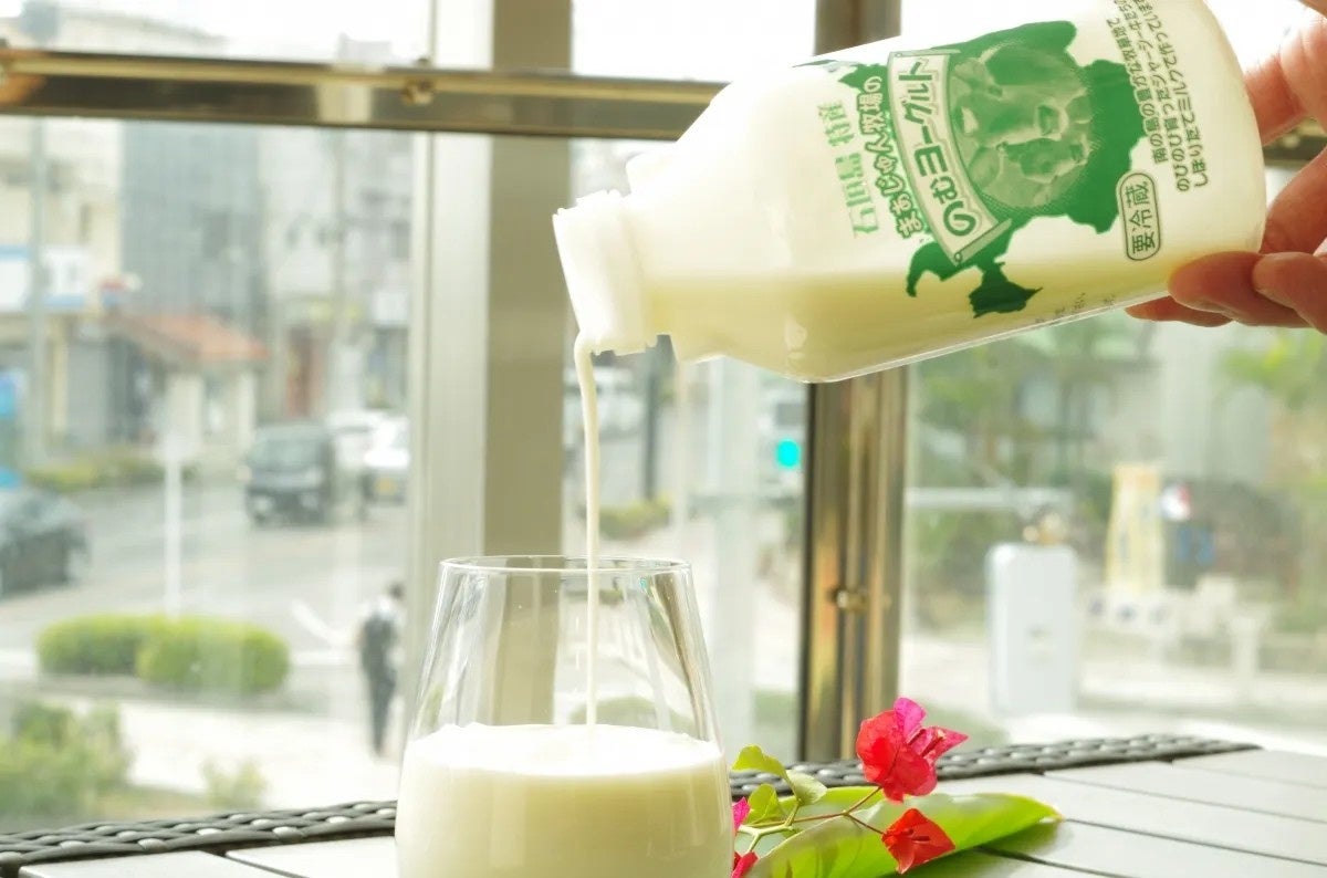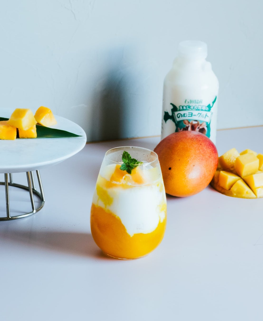 絞りたてのまぁじゅん牧場の飲むヨーグルトに石垣島たけしのマンゴーを使用した自家製マンゴー