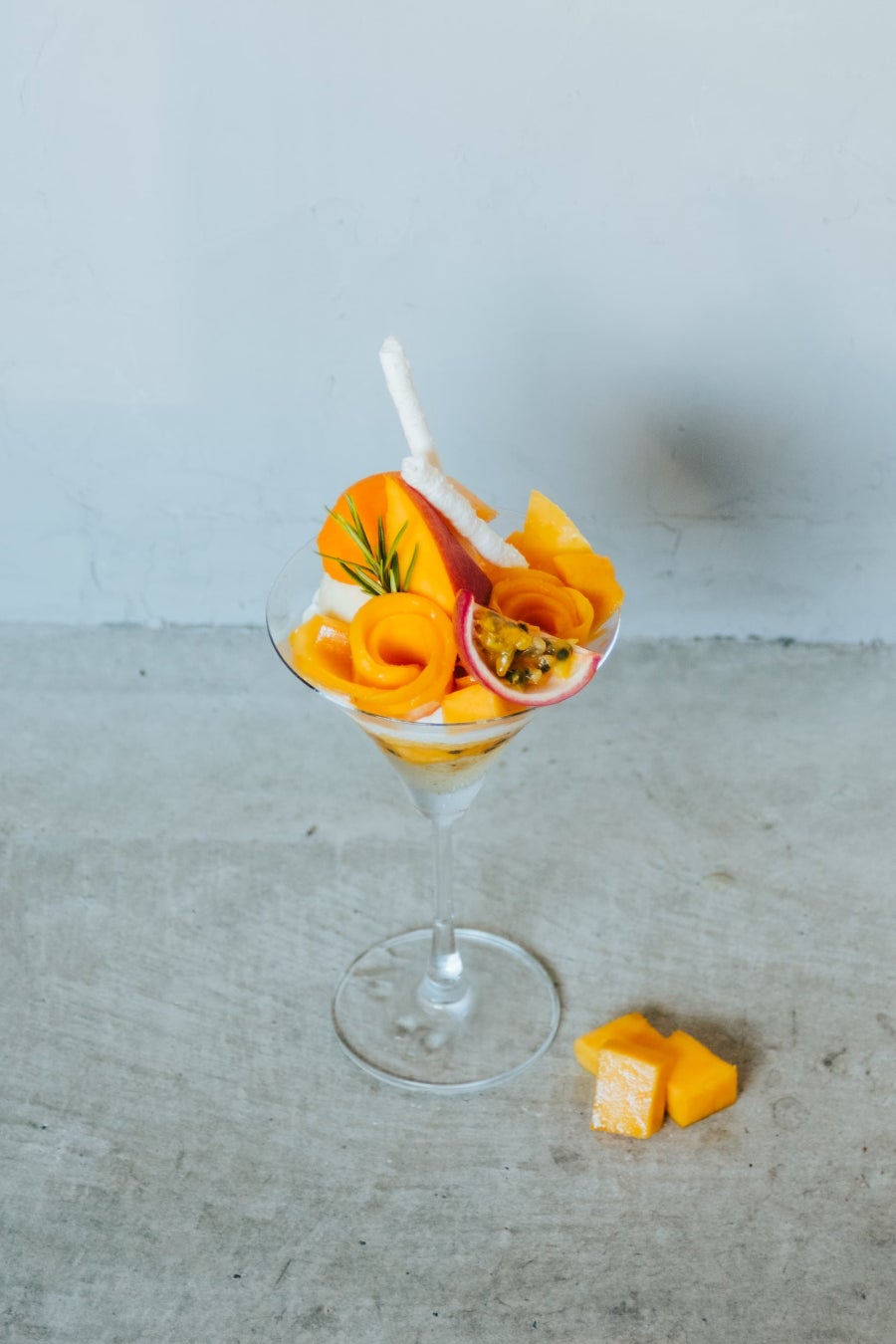 寿五八のマンゴージェラートを合わせたスペシャルマンゴーパフェ。