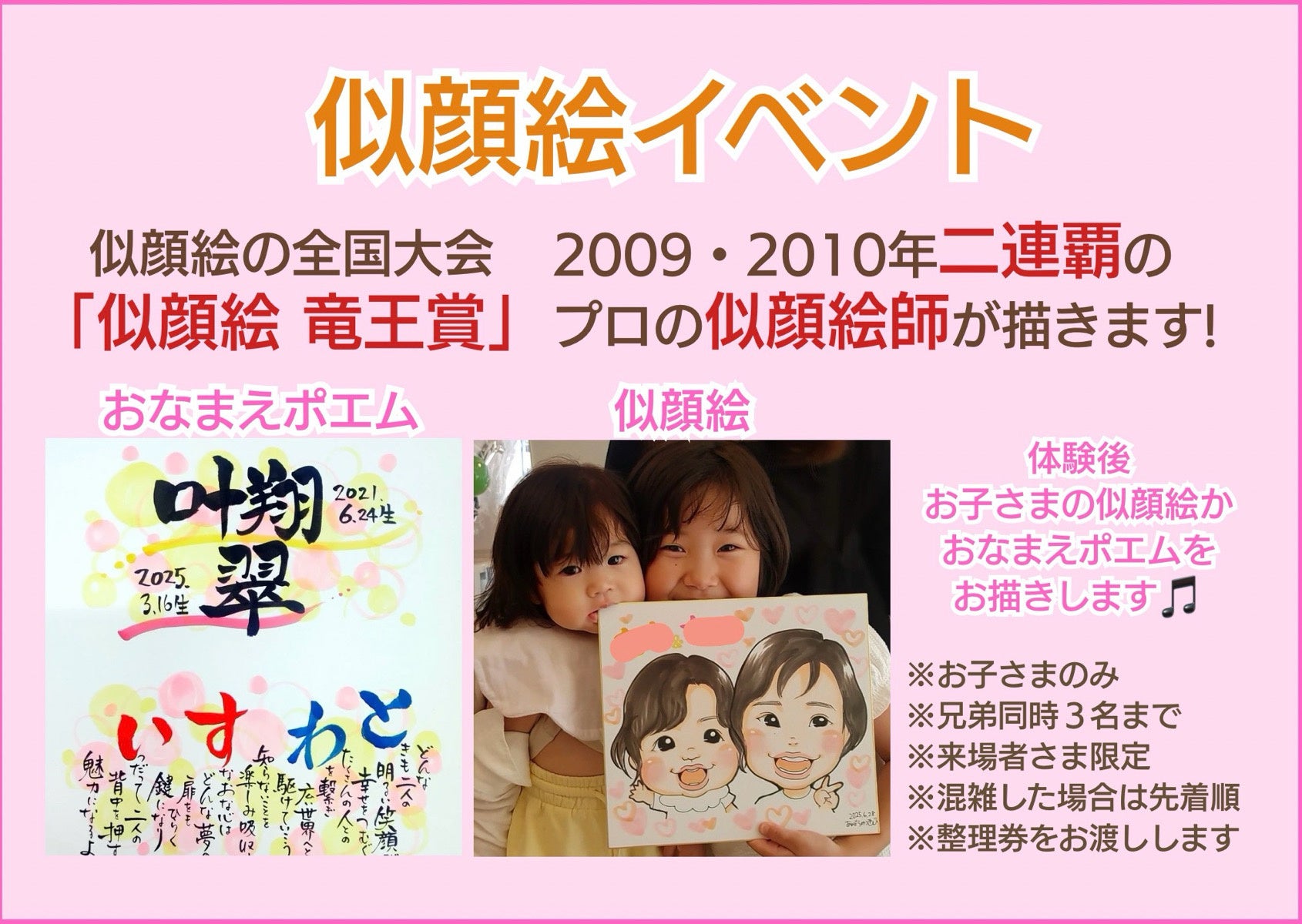 似顔絵竜王賞受賞のプロ似顔絵師が来場。来場者の似顔絵をその場で描いてプレゼントします(先着順・数量限定)。