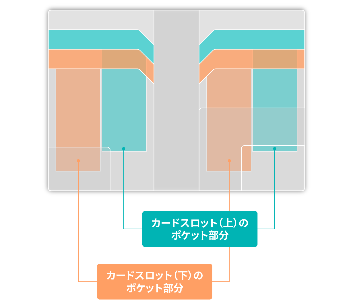 極限まで薄くするためにカードスロットをT字型に再設計。スロット同士が重ならないようにすることで厚さを解消しました。見えない部分へのミリ単位のこだわりが、大容量で12mmという薄さを実現しました。