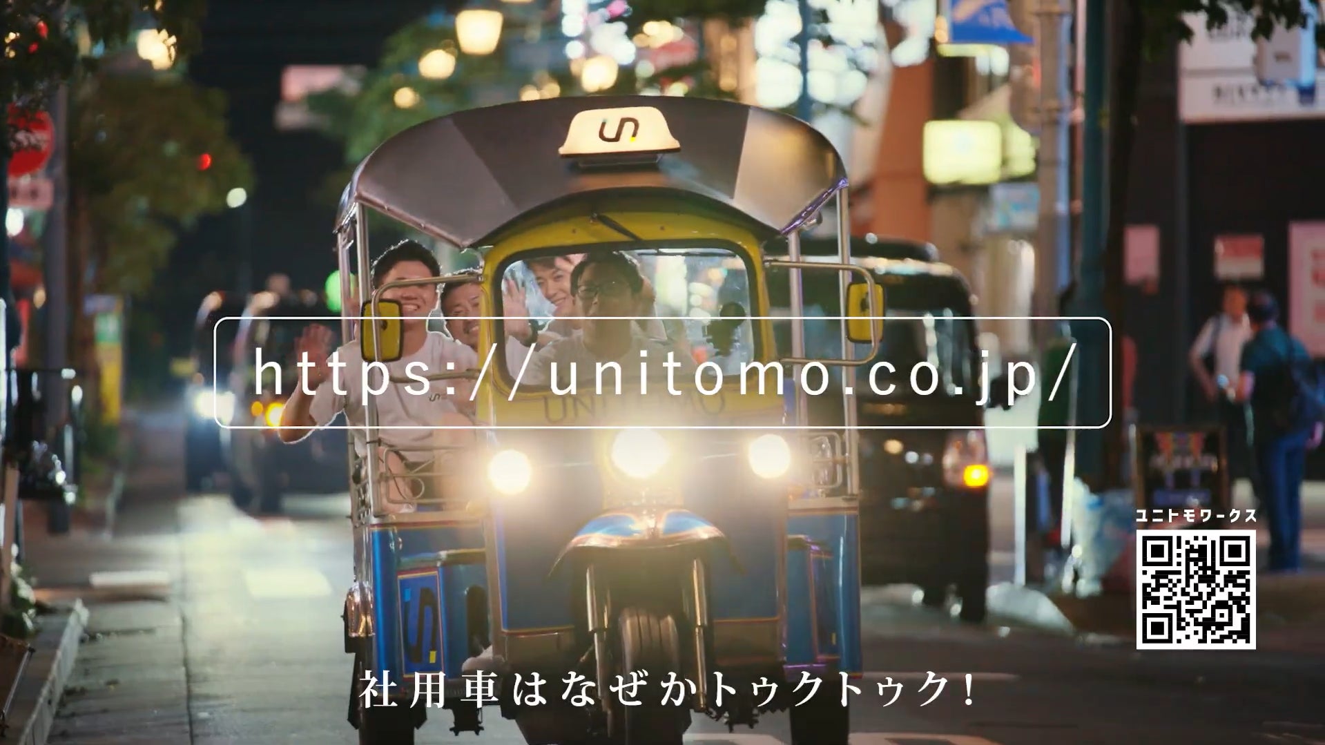 ユニトモワークスの社名の由来は、「ユニ=unique=唯一無二」「トモ=friend=仲間」「ワークス=works=仕事・作品」であり、「唯一無二の仲間たちと仕事をする」「唯一無二の作品を世の中に残す」という思い、理念が込められております。今回のCMもまさしく弊社の理念を体現したような「作品」としてとらえています。