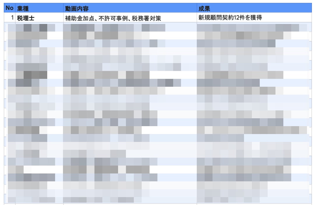 士業、工務店、製造業からB2B SaaSまで、30以上の業種において「実際に売上が上がった動画テーマ」と、その「具体的な成約数・受注額」を網羅した実践的な事例集となっています。