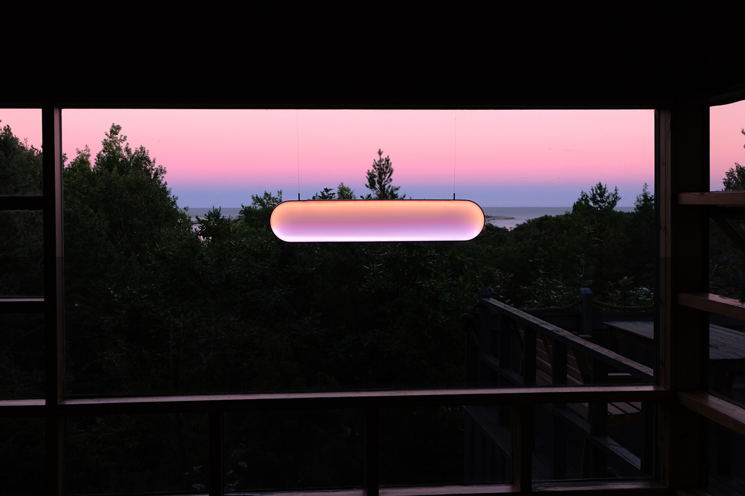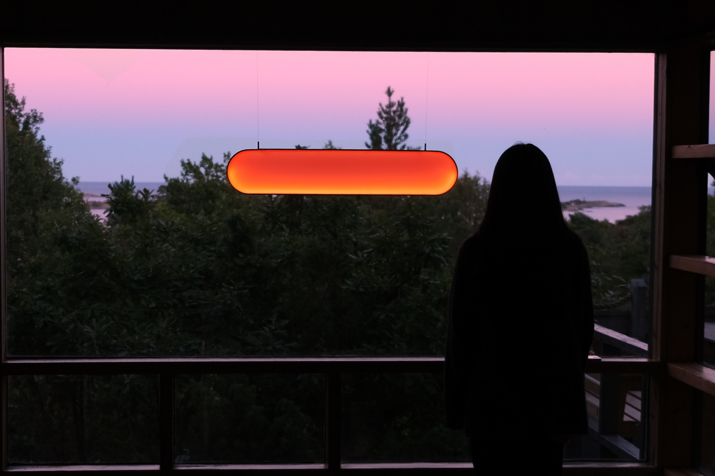 Sunneには、有機太陽電池や色素増感型太陽電池(DSSC)といった、軽量で循環性の高いソーラー技術が用いられています。これらはリサイクル素材由来で構成される場合もあり、従来のシリコンパネルに比べて環境負荷が低く、デザインへの統合性にも優れています。窓辺に設置された本体は、日中に太陽光を取り込み電力として蓄え、夜にはそのエネルギーを用いて発光します。さらに、太陽電池自体が明るさの変化を感知するセンサーとして機能し、時間帯に応じて光のトーンが自然に変化します。本体の緩やかなカーブ形状は、より多くの光を受けるための設計であり、機能とフォルムが一体化しています。発電・蓄電・発光がひとつのプロダクトに統合されることで、太陽エネルギーを“インフラ”ではなく、“日常の体験”として再提示する装置となっています。