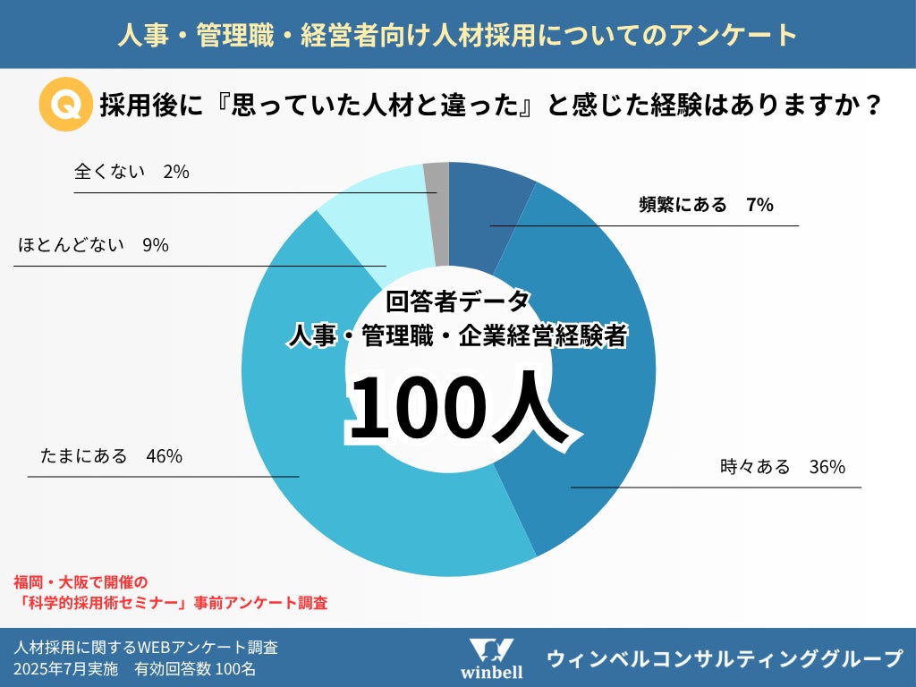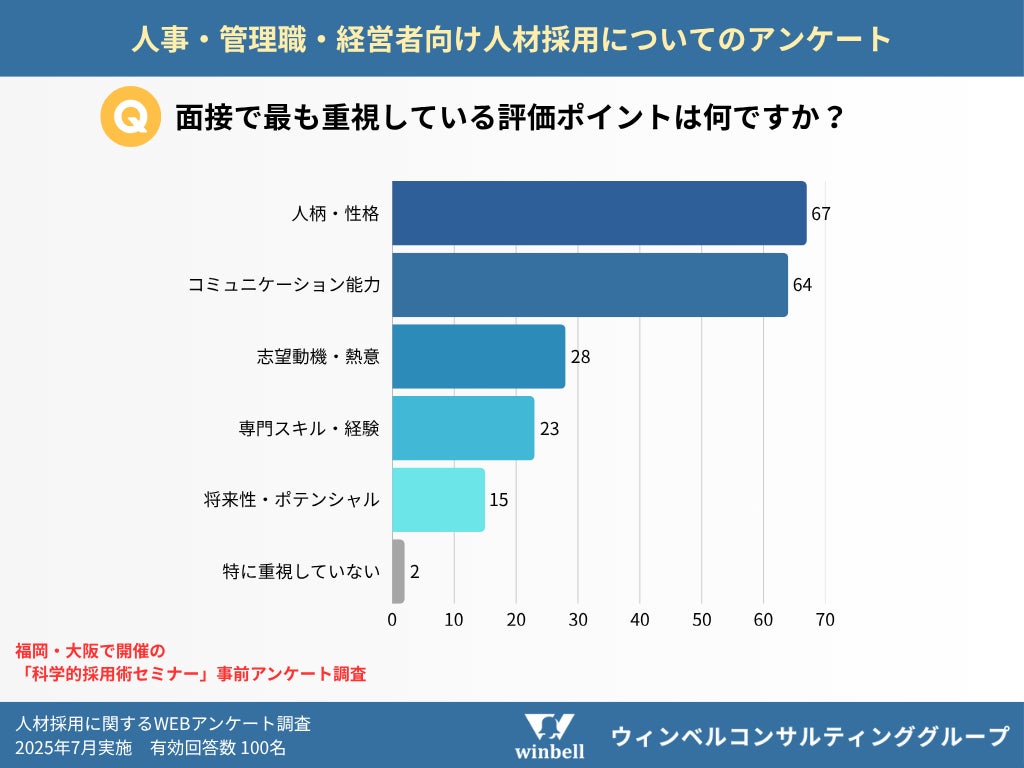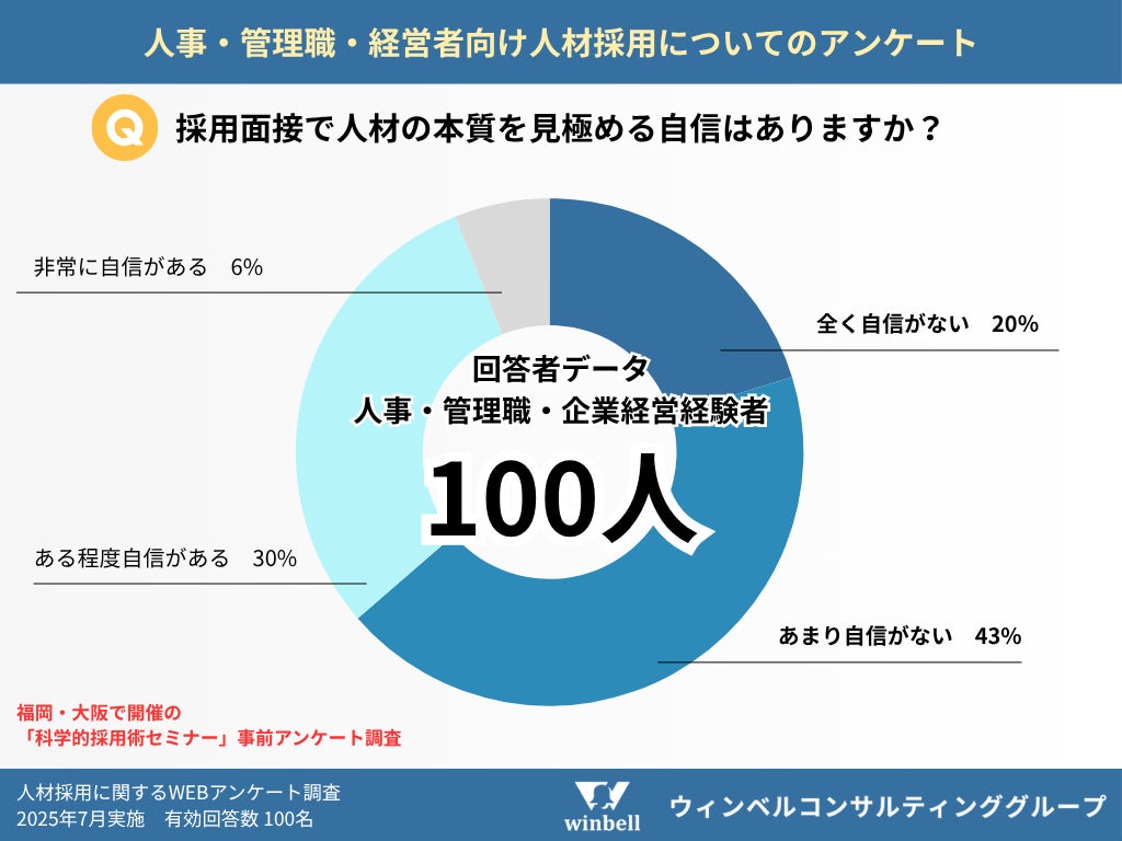セミナーの大阪開催決定に先立ち、ウィンベル合同会社では採用担当者・面接官経験者・経営者100名を対象とした人材採用に関する実態調査を実施いたしました。
