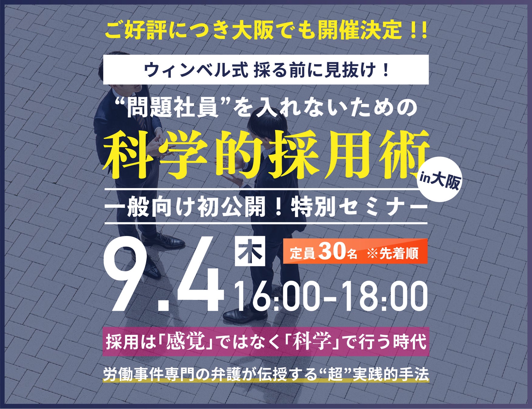 セミナー詳細:労働トラブルを予防する科学的採用術特別セミナー